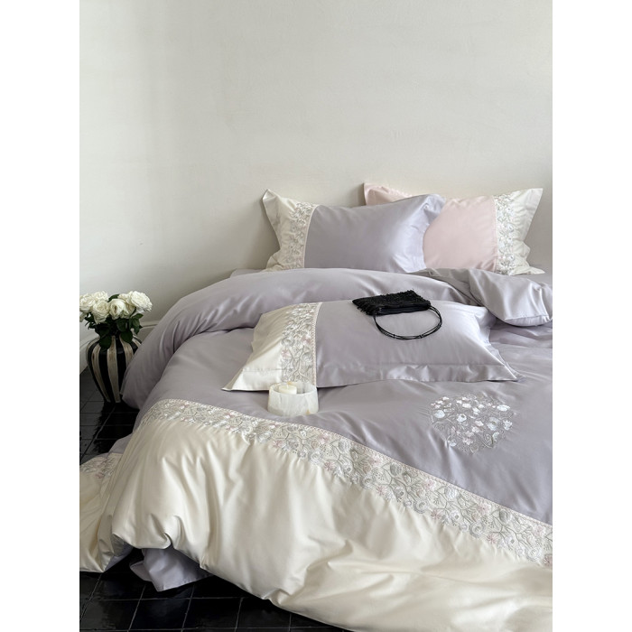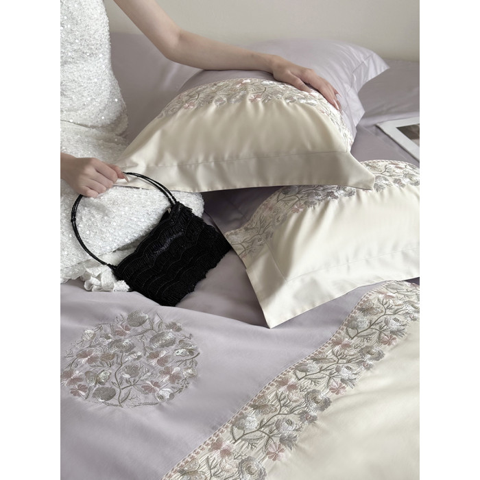 高級感200支全棉長絨棉被套四件套純棉紫色被罩1.8床笠款床上用品