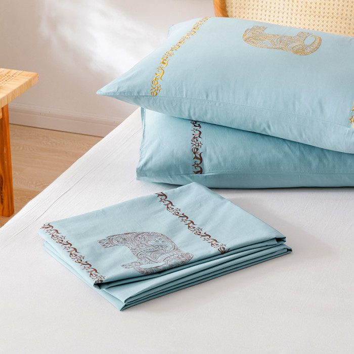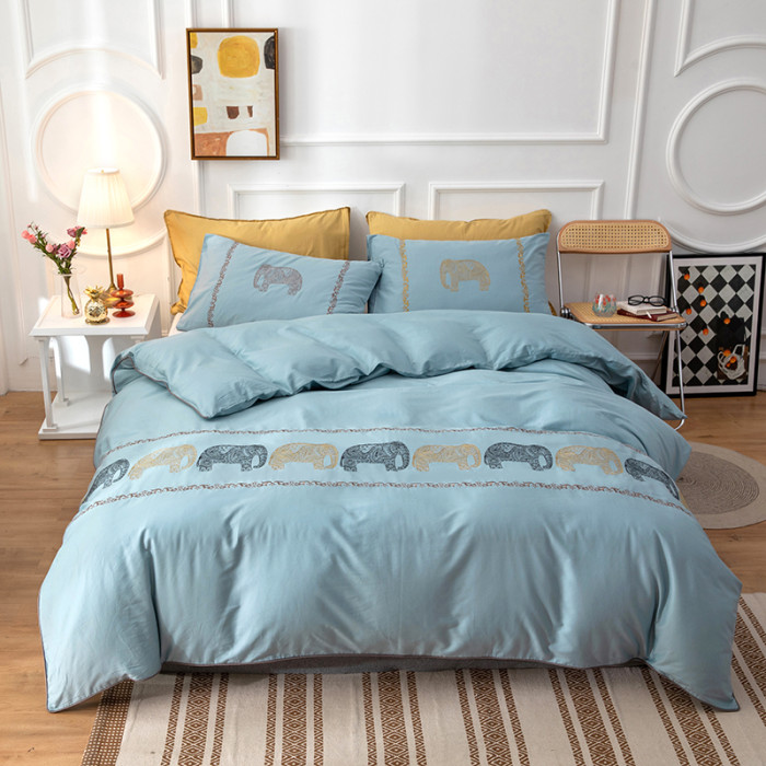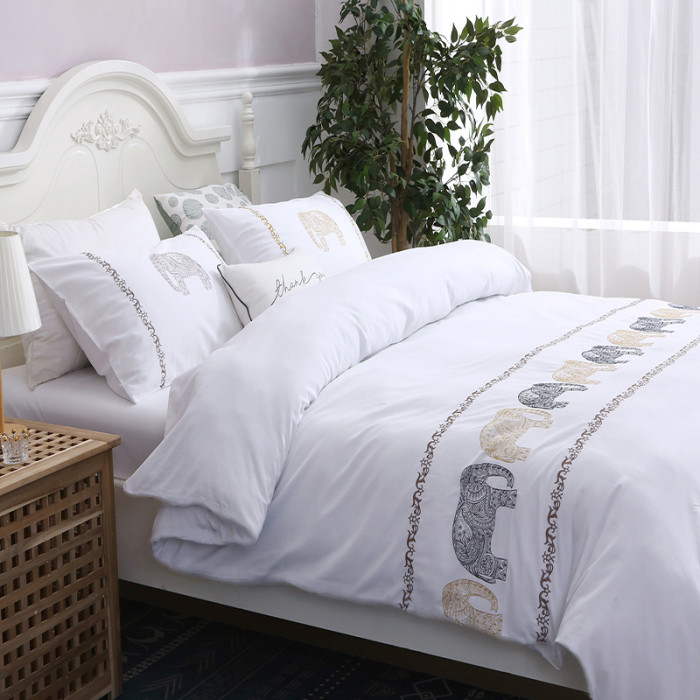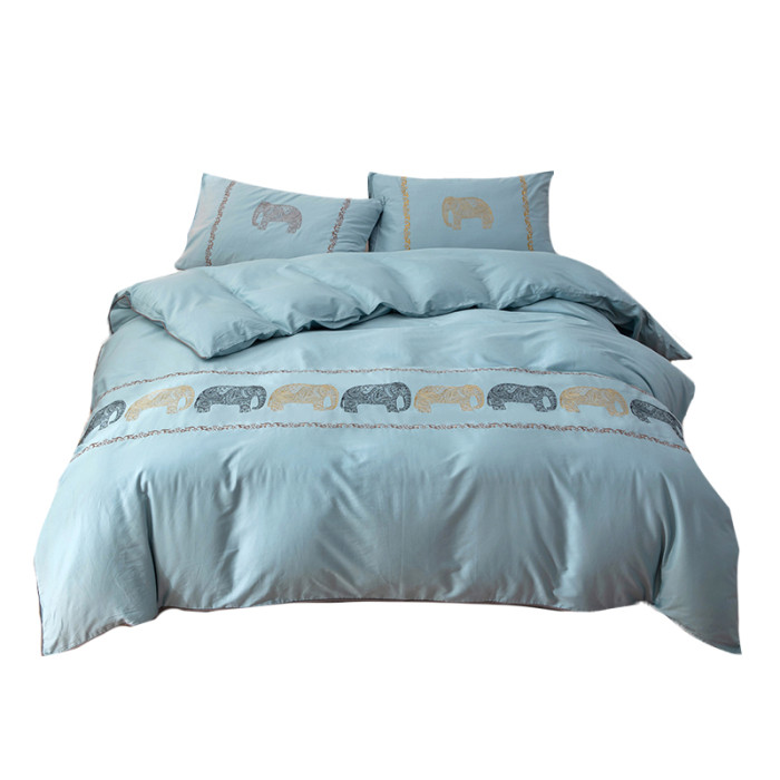 【超好看外單】純棉刺綉被套單件加厚全棉斜紋純色綉花被罩四件套