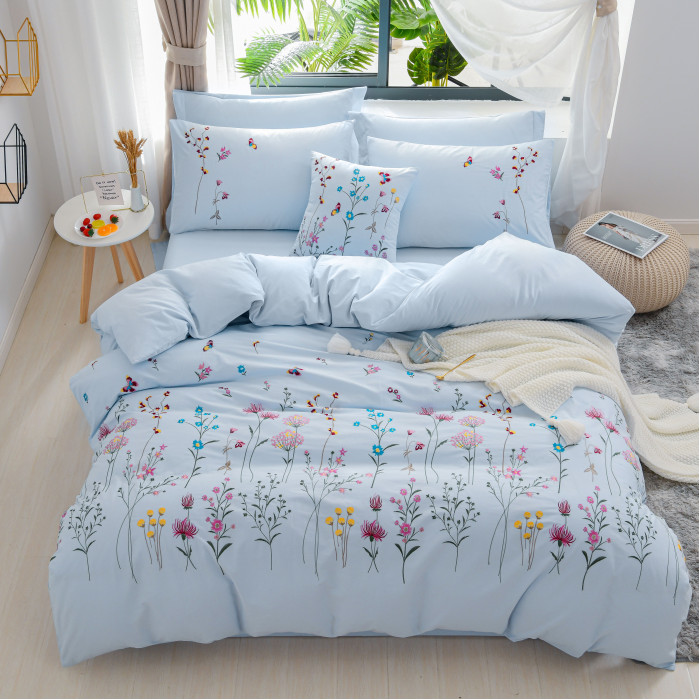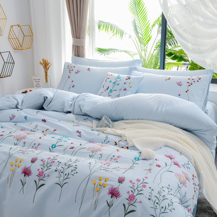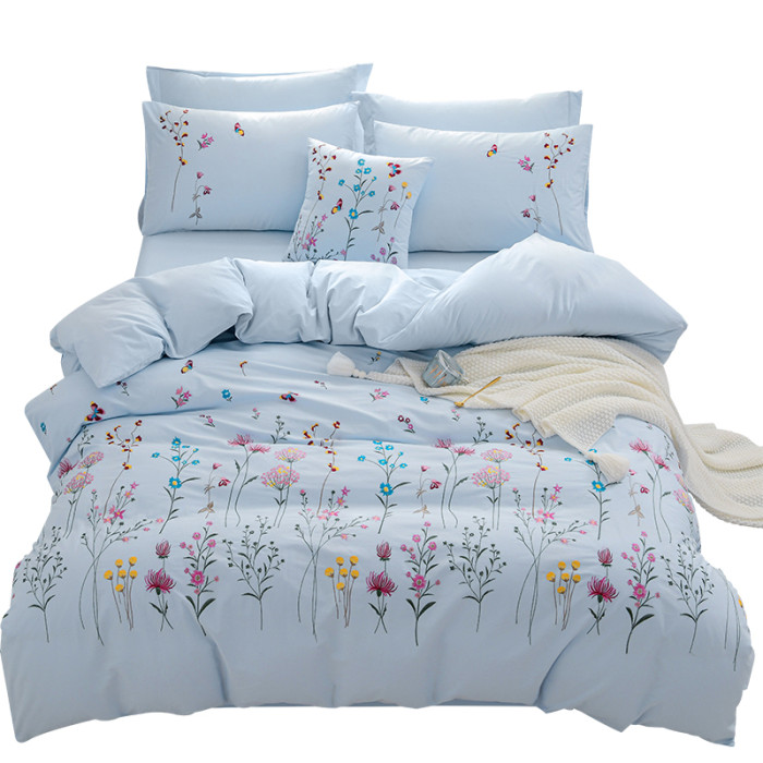 出口尾單田園花朵刺綉純棉被套四件套全棉斜紋雙人綉花床單