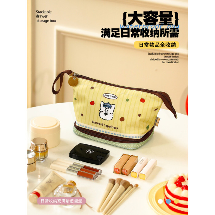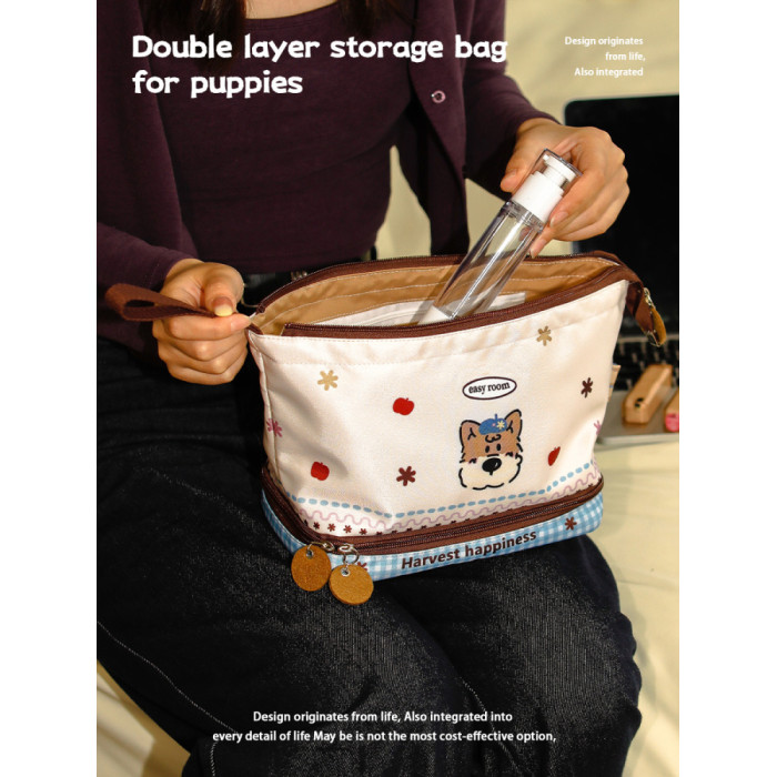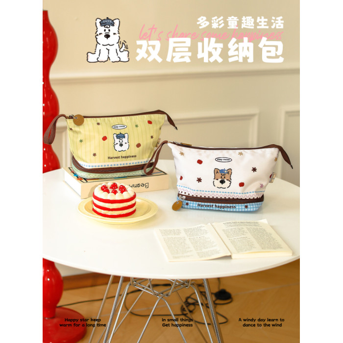 HuHu小狗棉底牛津雙層便攜收納化妝包