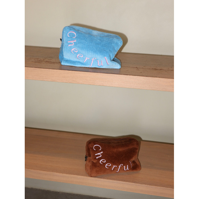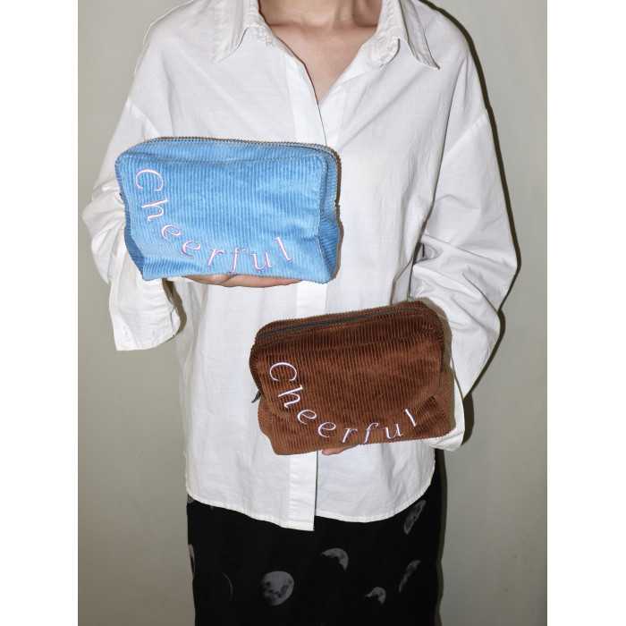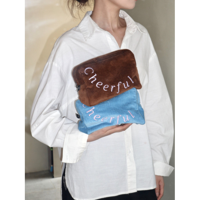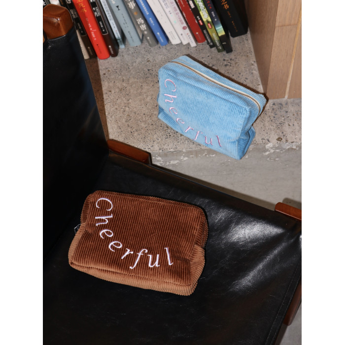 SunsetPark「Cheerful」復古燈芯絨刺綉簡約大容量可攜式收納化妝包