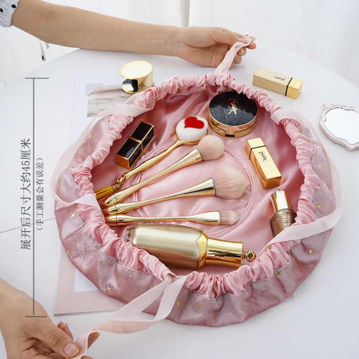 超火ins風少女心洗漱品化妝包懶人抽繩收納袋子 大容量可攜式口紅包