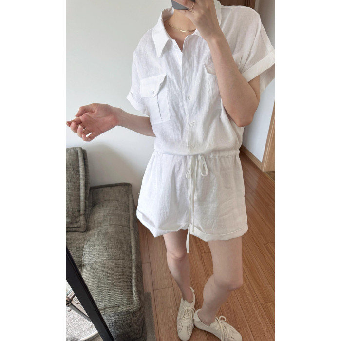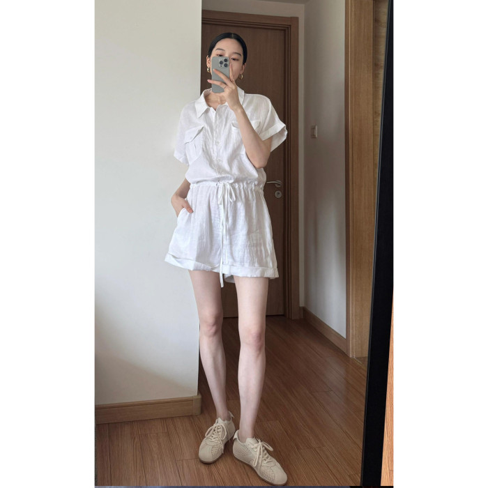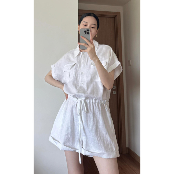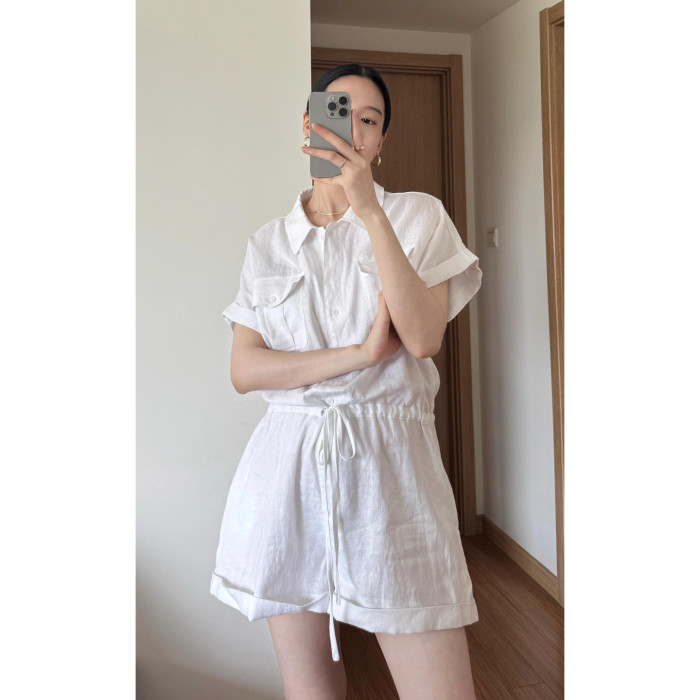自在淡人&倦怠感 南油高定亞麻連體褲/寬松廓形抽繩收腰連體衣女