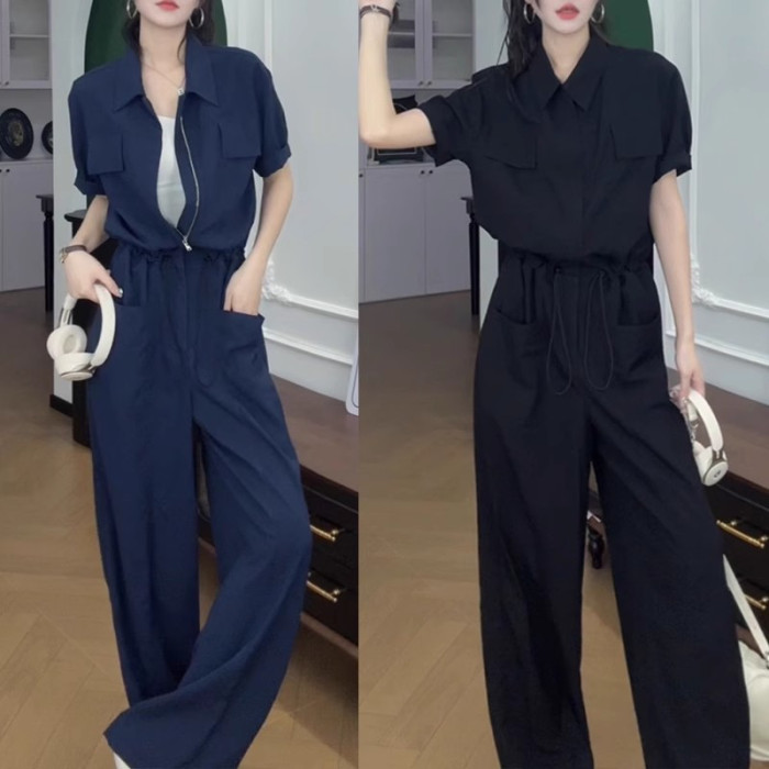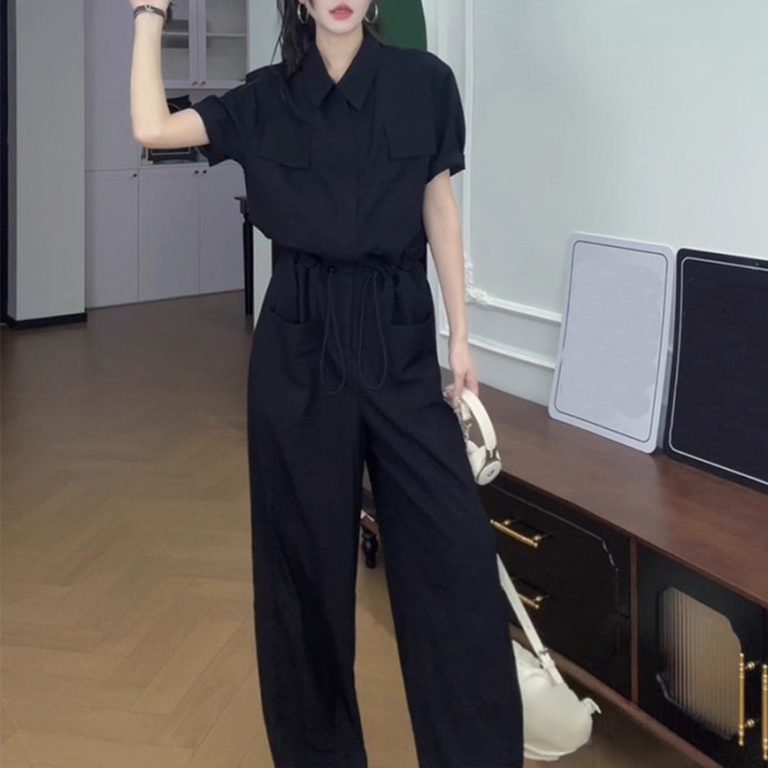 高腰顯瘦褶皺松緊收腰連體褲女2025年夏季新款時尚洋氣減齡連體衣