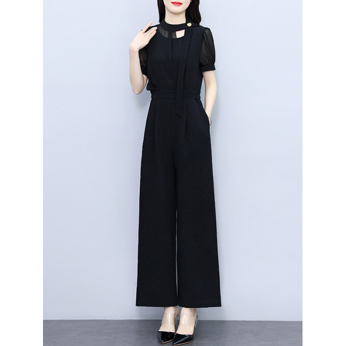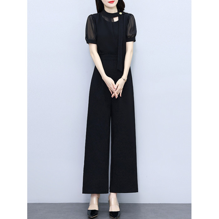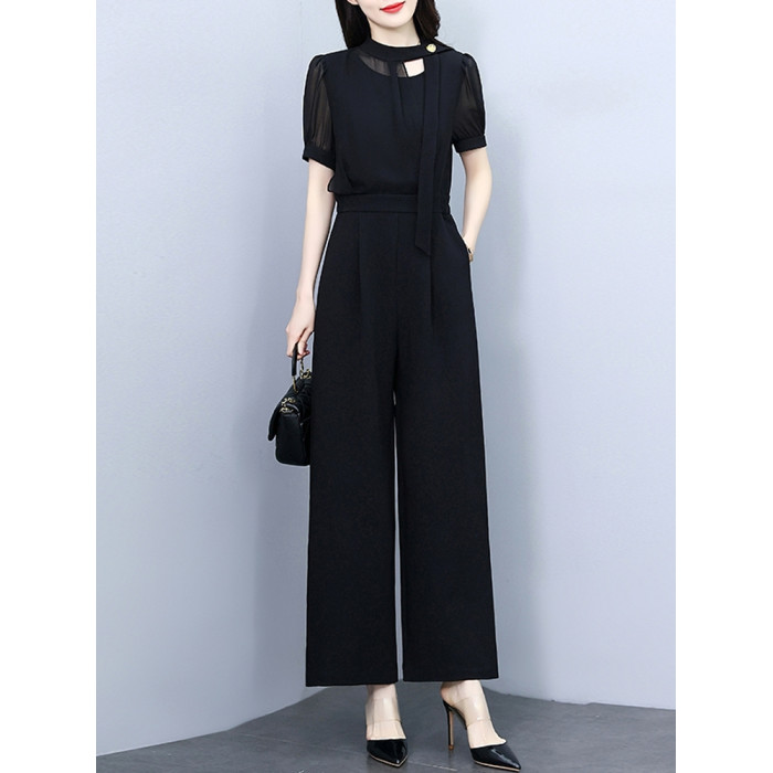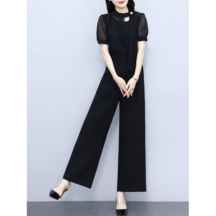 時尚連體衣套裝女短袖2025夏季新款收腰顯瘦連身褲連體直筒長褲子