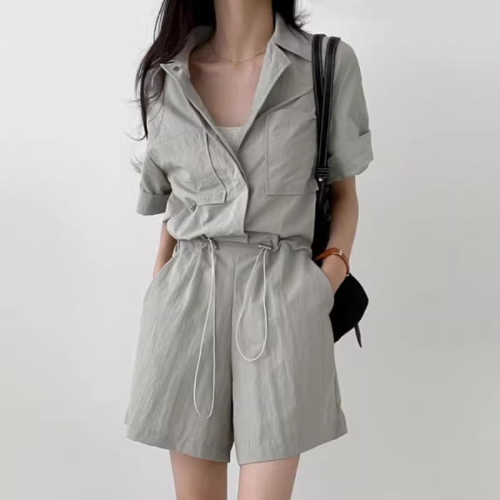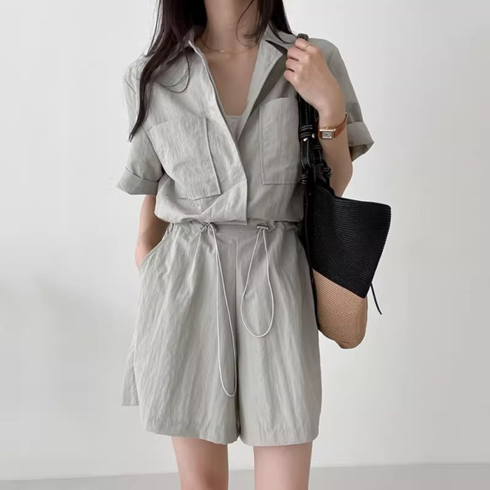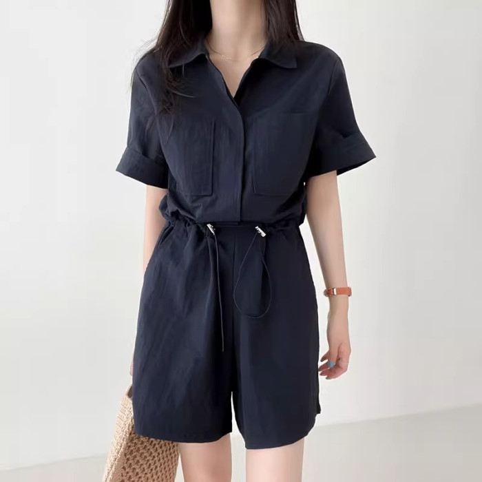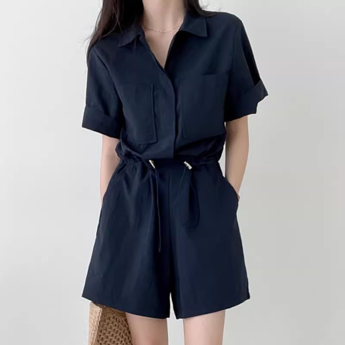 香港藏青色連身短褲女外穿夏季2025新款巨好看收腰濶腿連體衣套裝