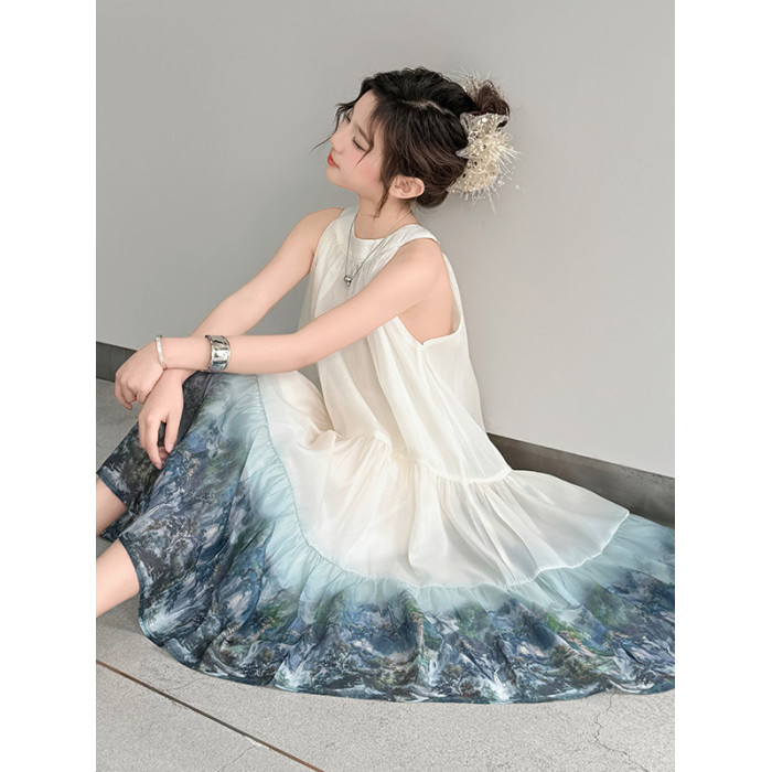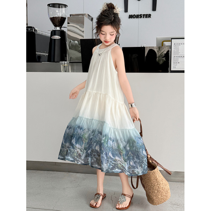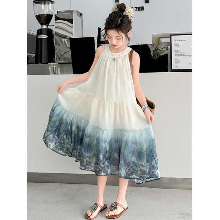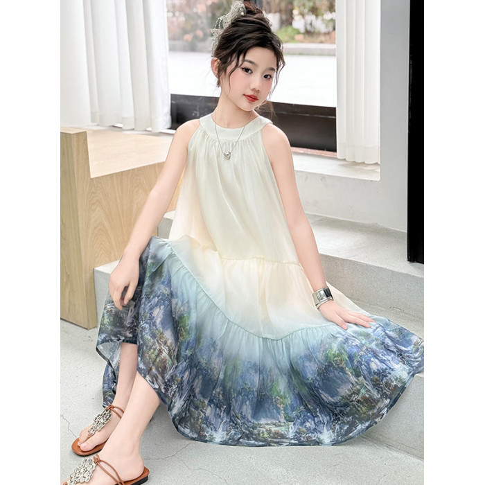 女童連衣裙夏裝2025新款兒童洋氣掛脖吊帶裙中大童夏款女孩沙灘裙