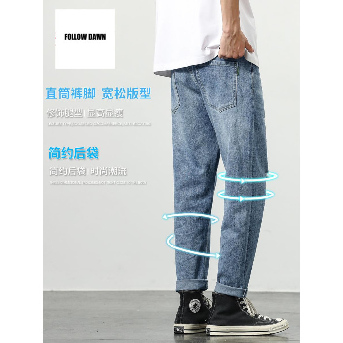 男士牛仔褲男潮牌春秋季新款寬松直筒彈力休閒九分褲