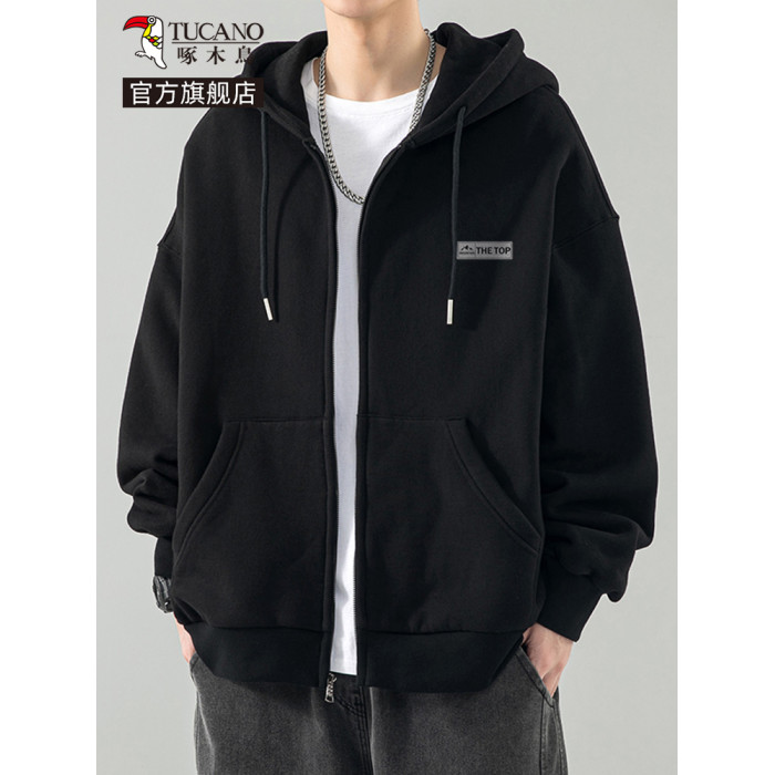 啄木鳥連帽外套男春秋季2025新款美式休閒衛衣開衫男士寬松夾克Y