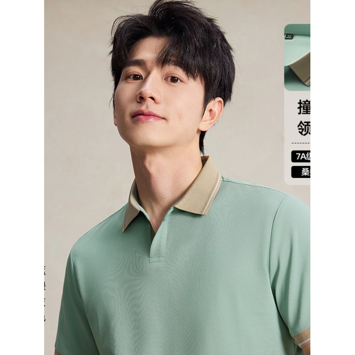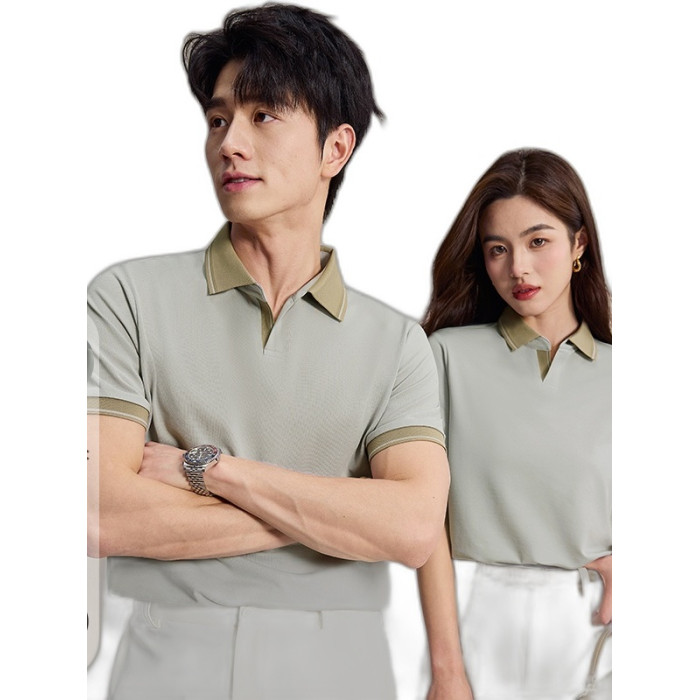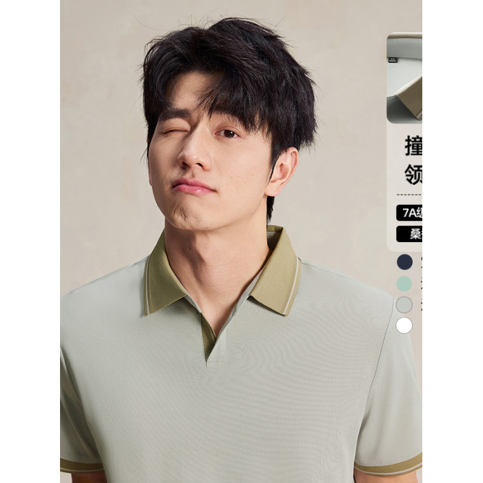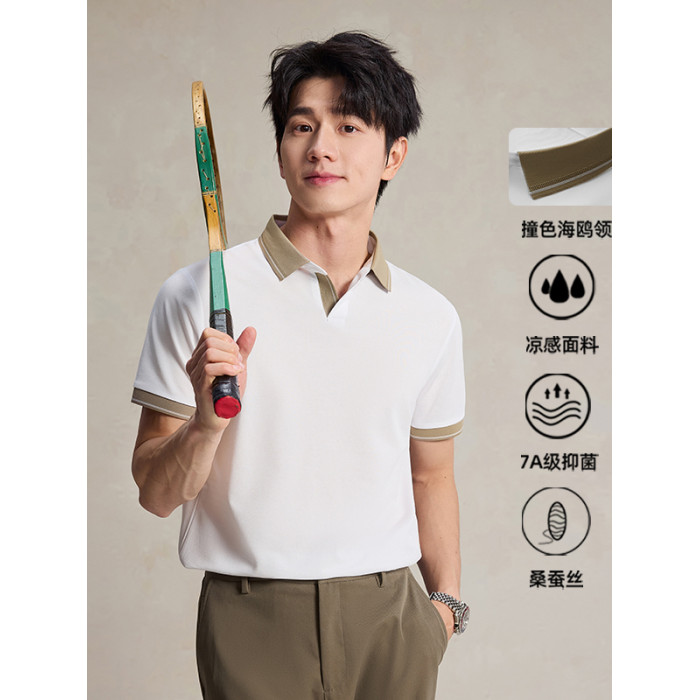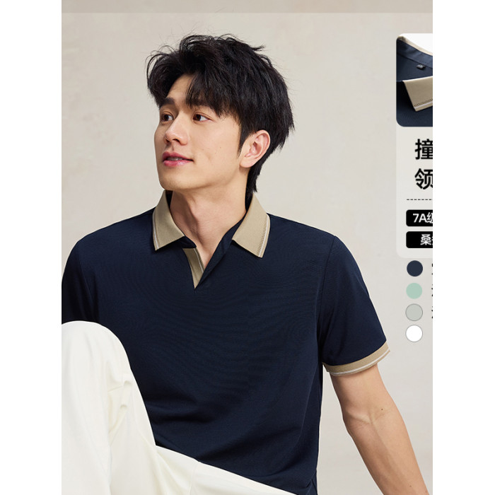 海鷗領拼色設計短袖POLO衫T恤2025春夏新款簡約百搭輕奢純色薄款