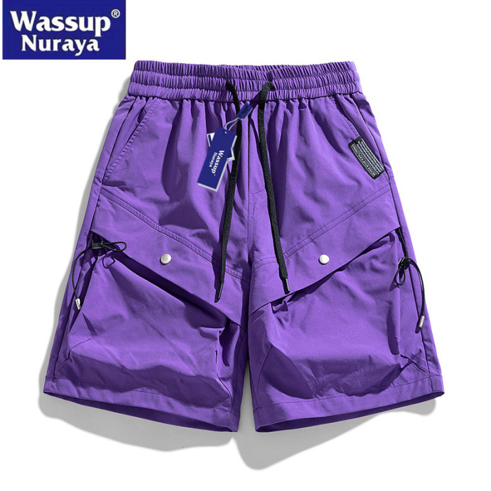 WASSUP Nuraya潮牌美式機能風紫色工裝短褲男夏季戶外休閒五分褲