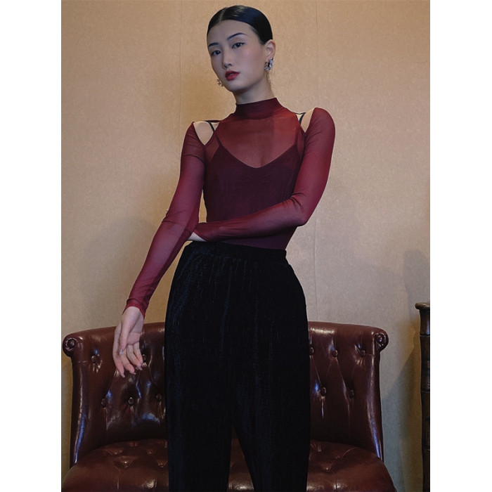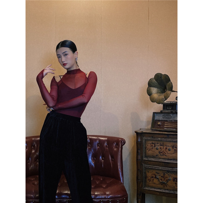 WYZ蓋蓋街舞氣質網紗t恤打底衫高彈網紗連體衣爵士舞蹈服表演服裝