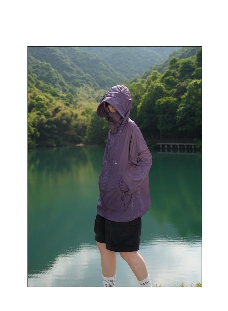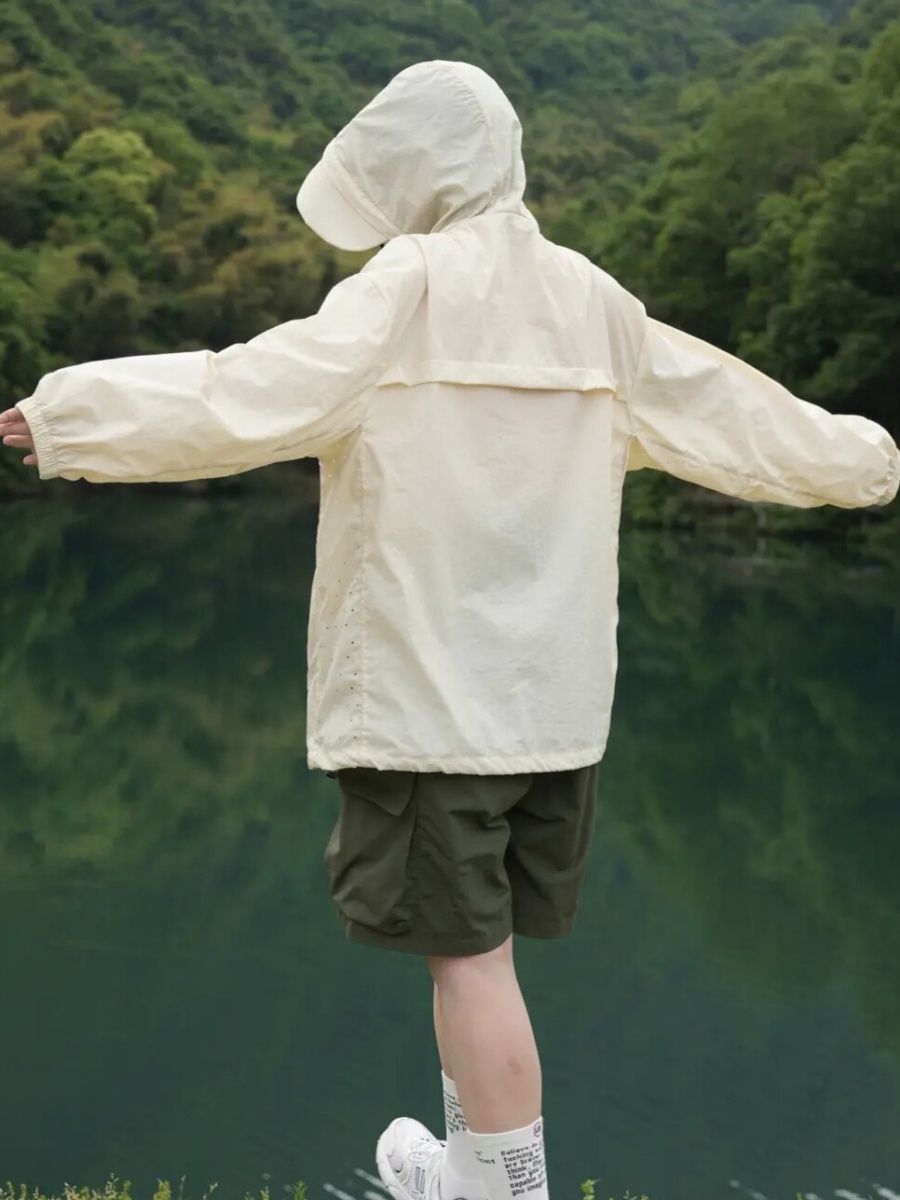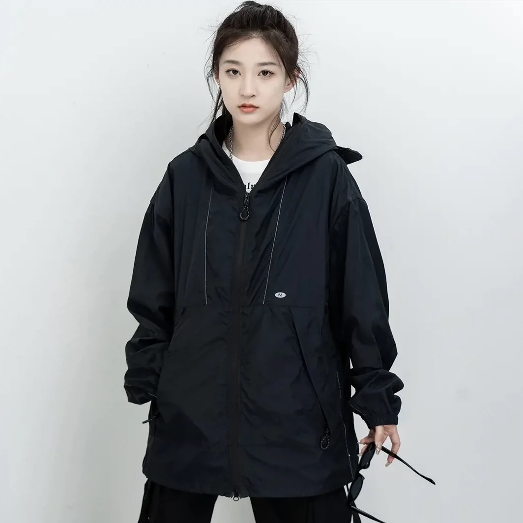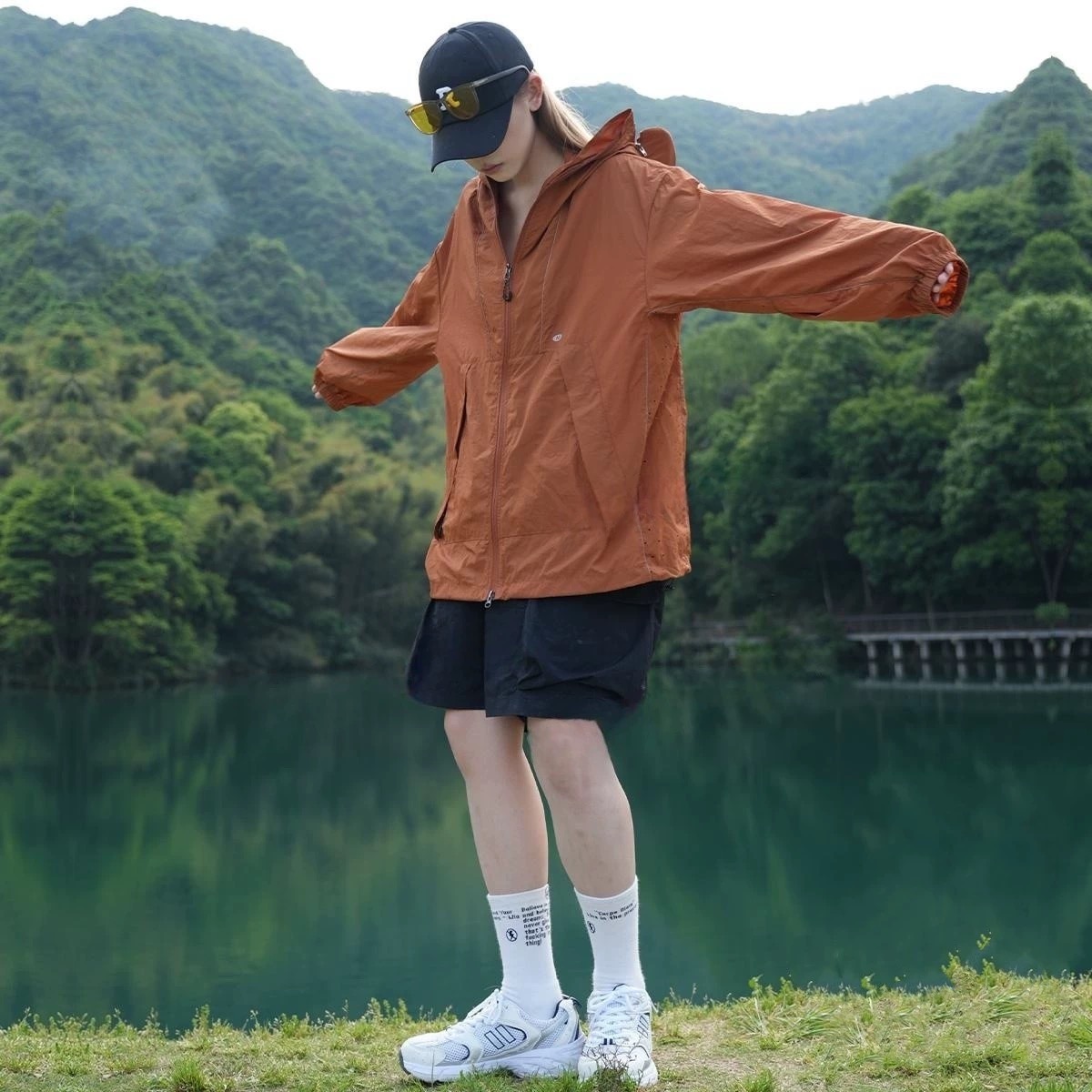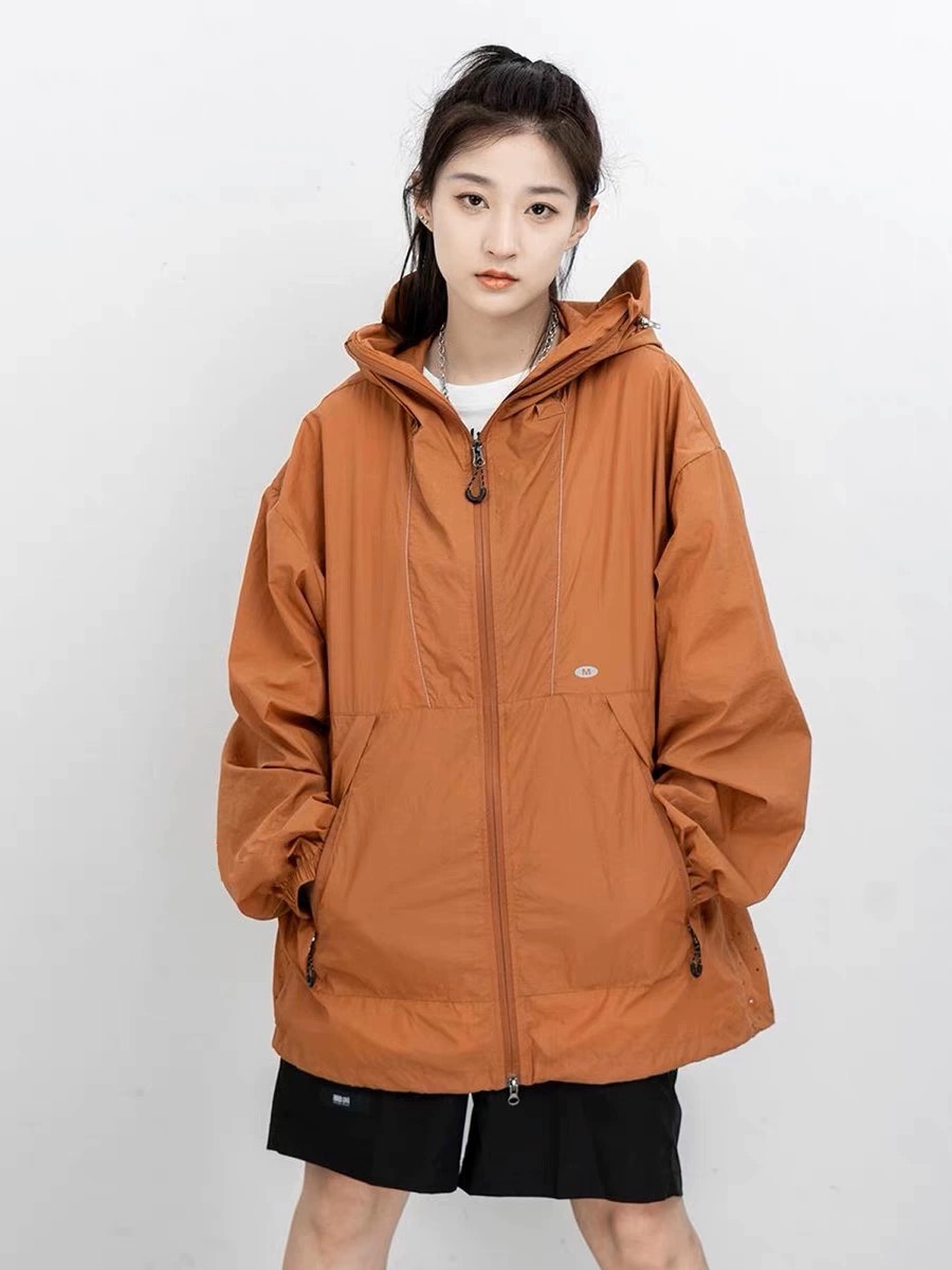 防紫外線連帽簷防曬衣女夏季輕薄透氣寬松山系戶外工裝沖鋒衣外套