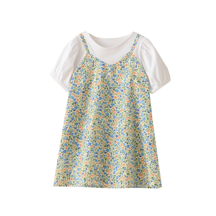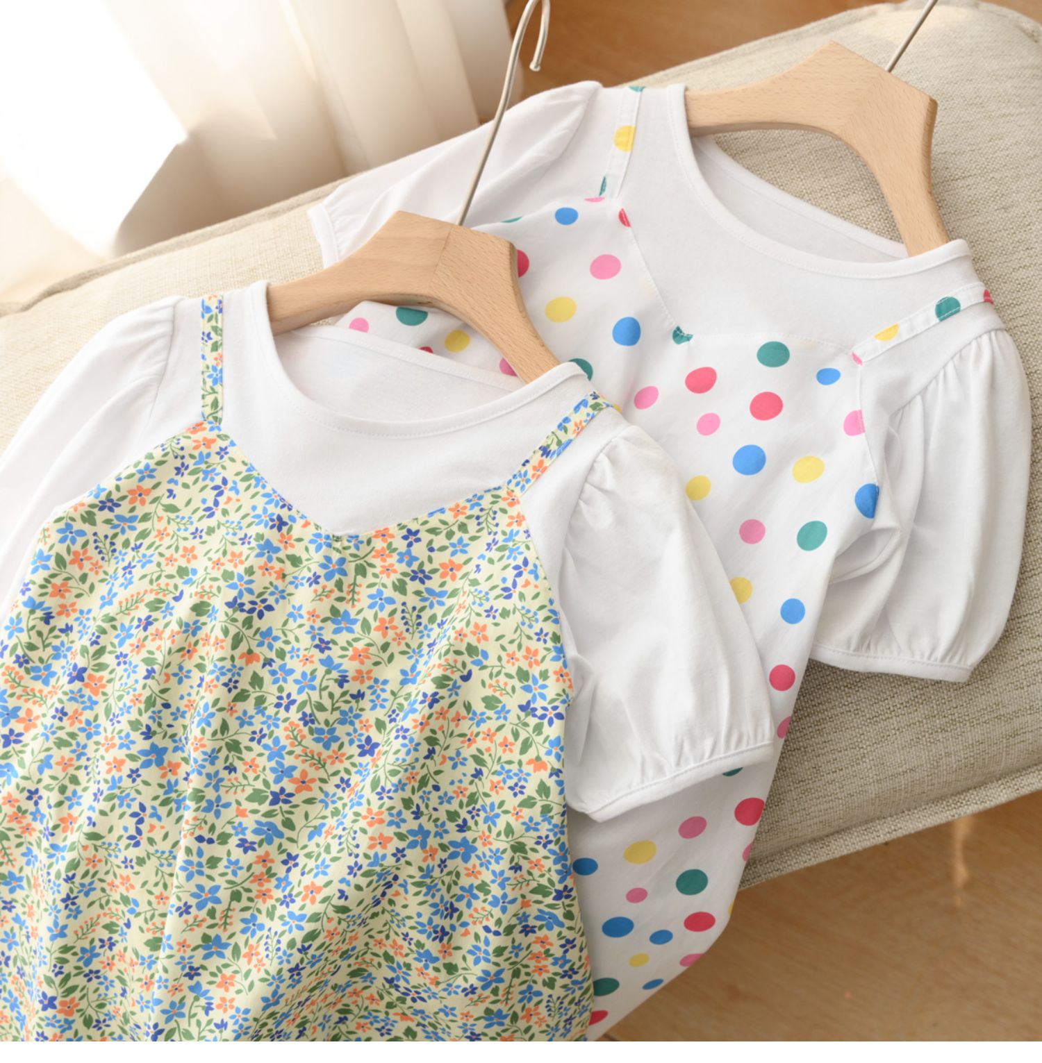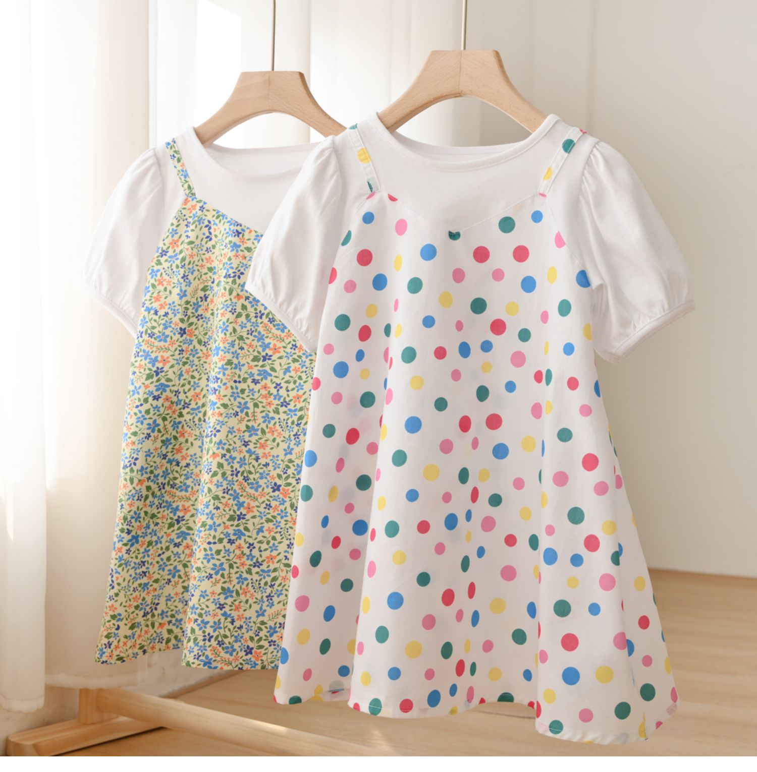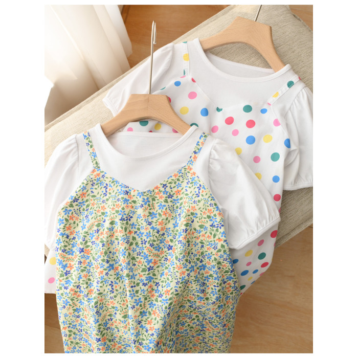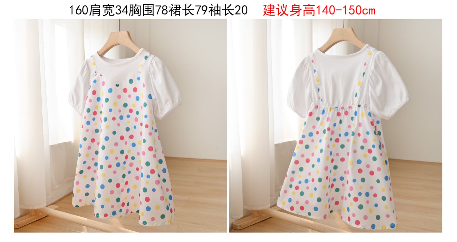 兒童純棉連衣裙 女童A字版假兩件裙子 中大童甜美裙子 夏款童裝