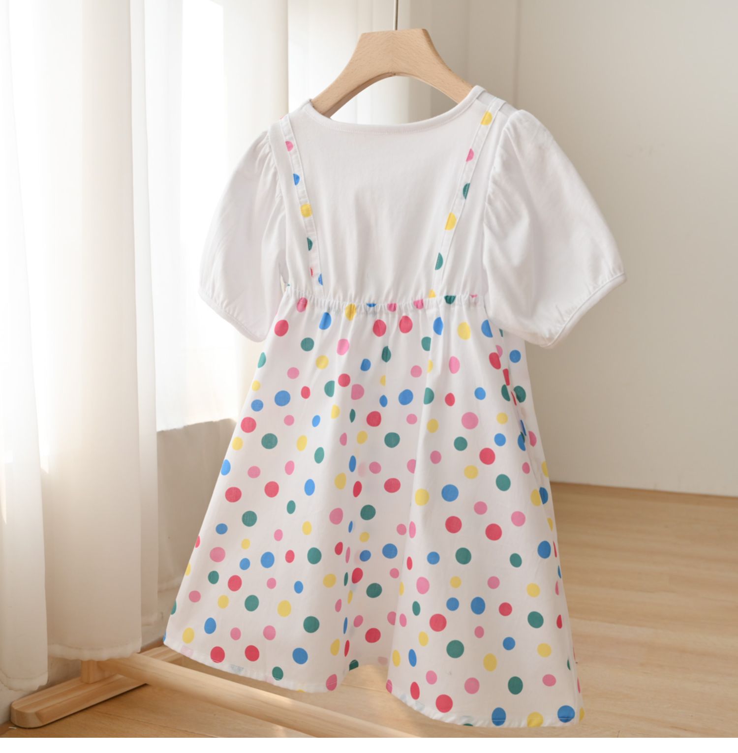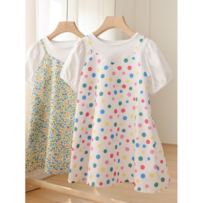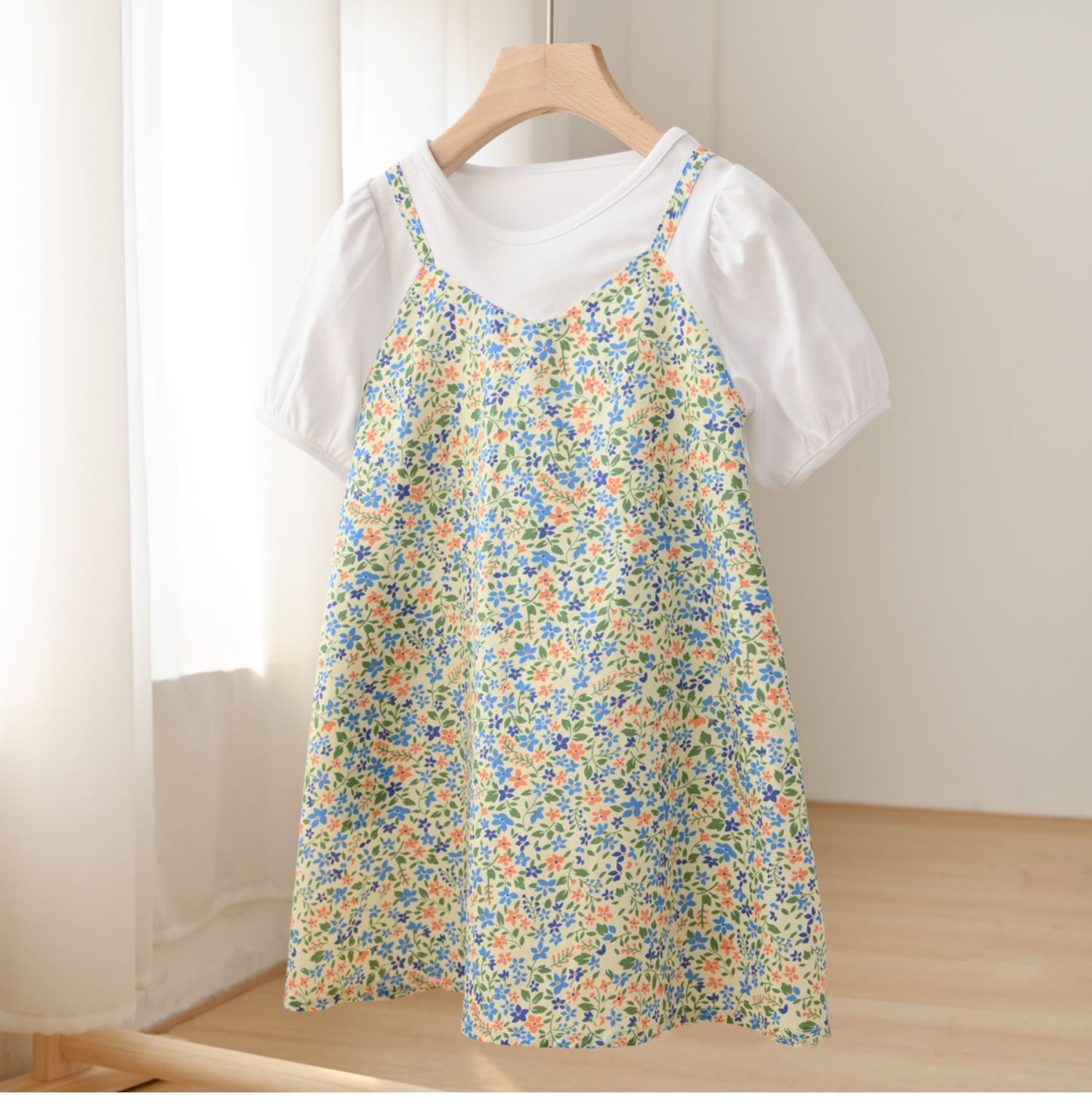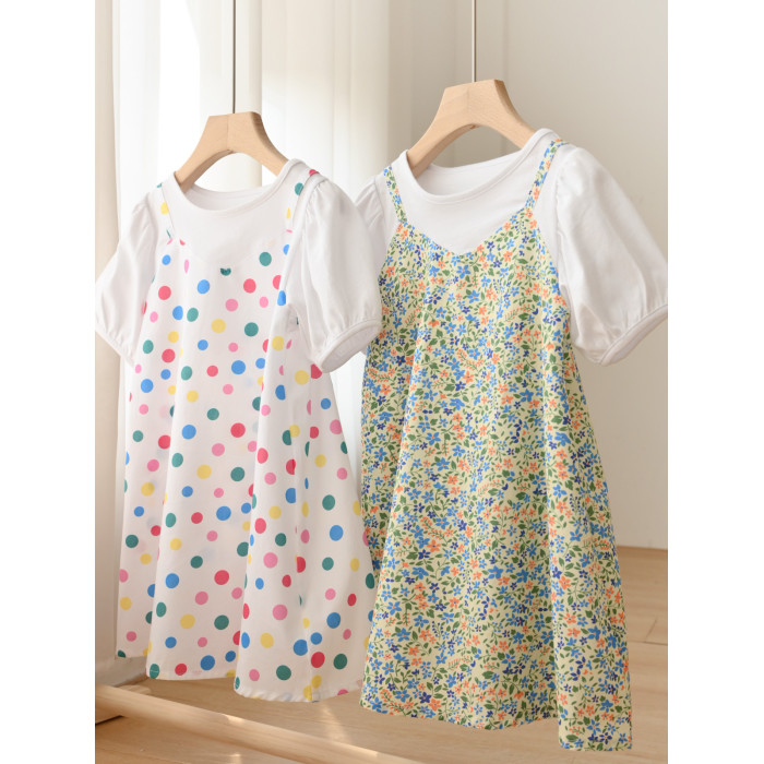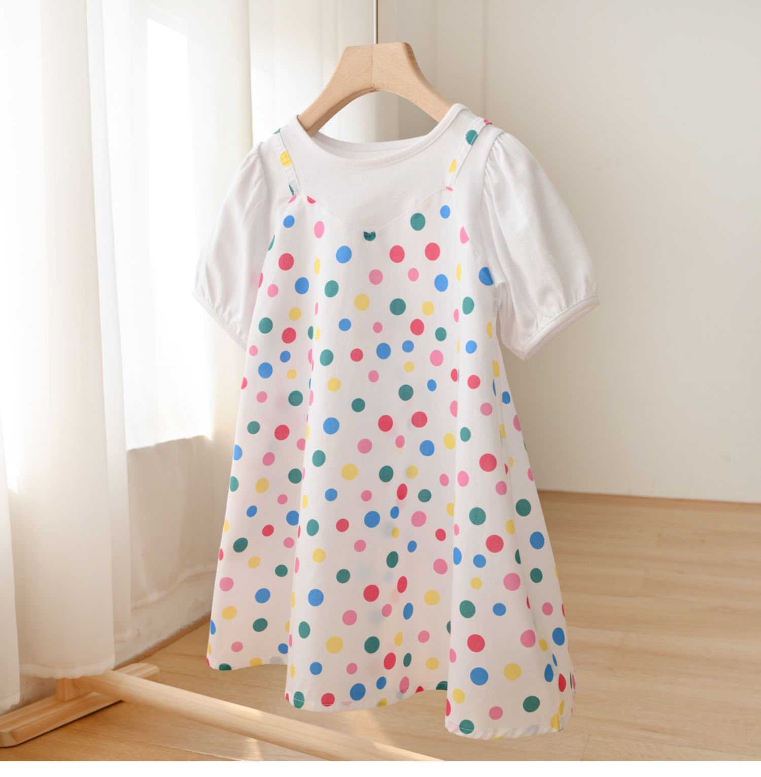 兒童純棉連衣裙 女童A字版假兩件裙子 中大童甜美裙子 夏款童裝