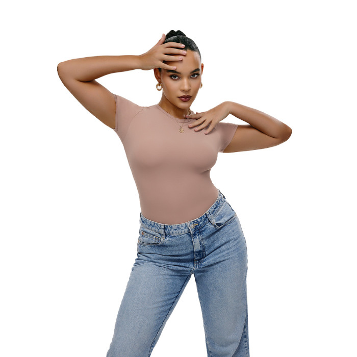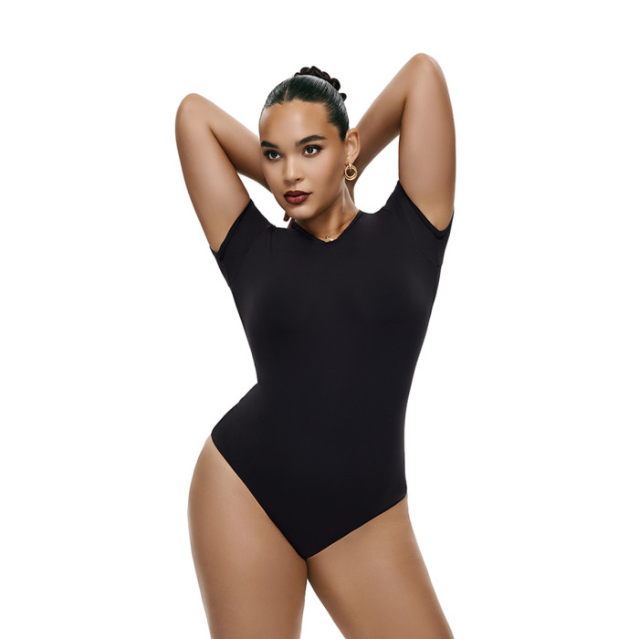 之塑輕塑衣修身短袖打底高彈裸感顯瘦美式辣妹正肩T恤緊身連體衣