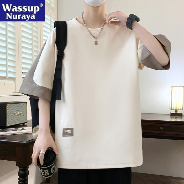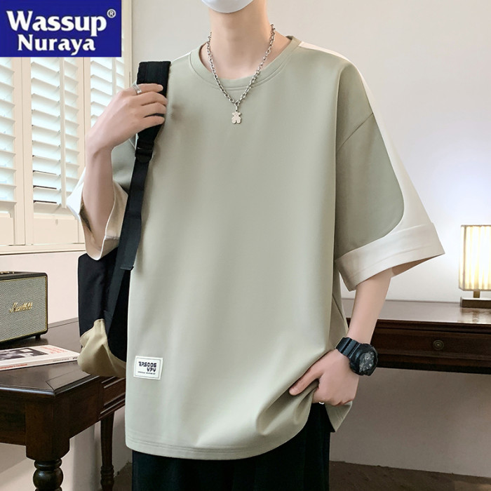 WASSUP NURAYA撞色圓領短袖T恤男生夏新款青年寬松休閒半袖體恤衫