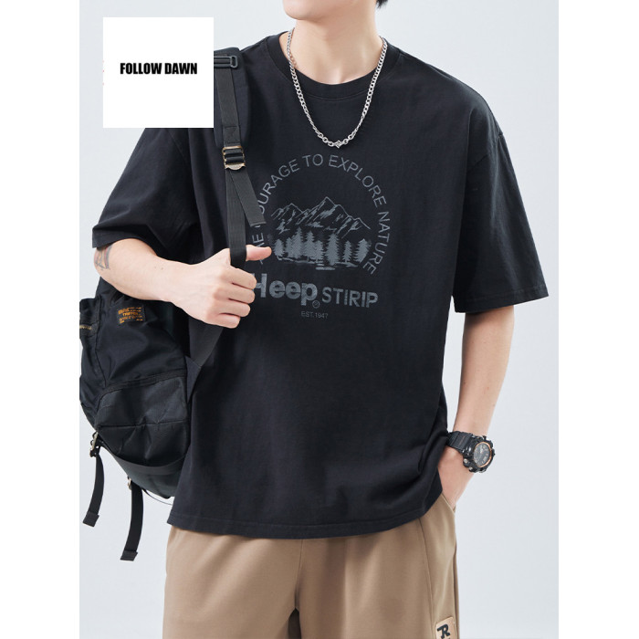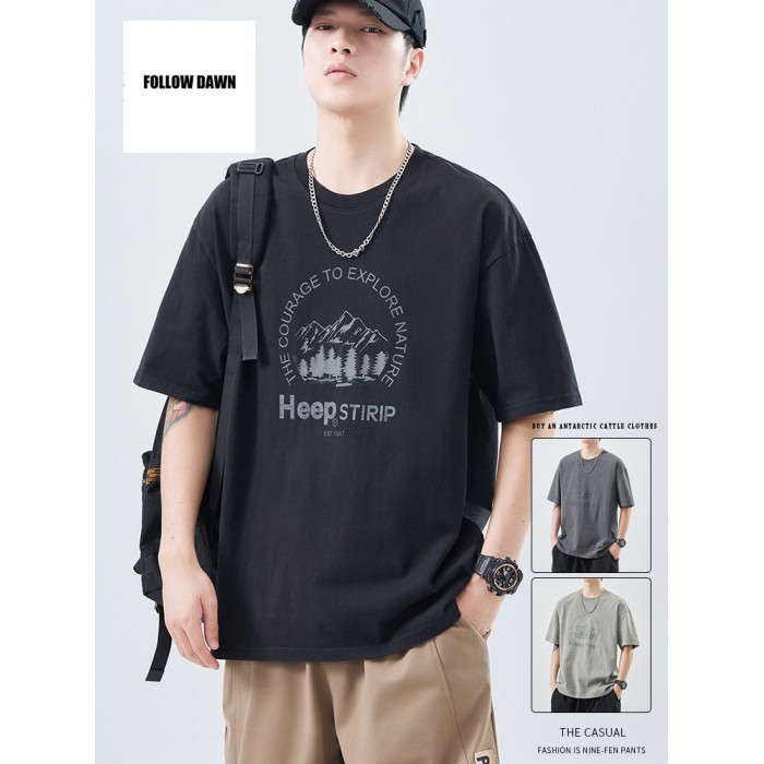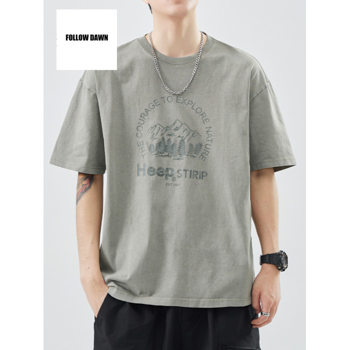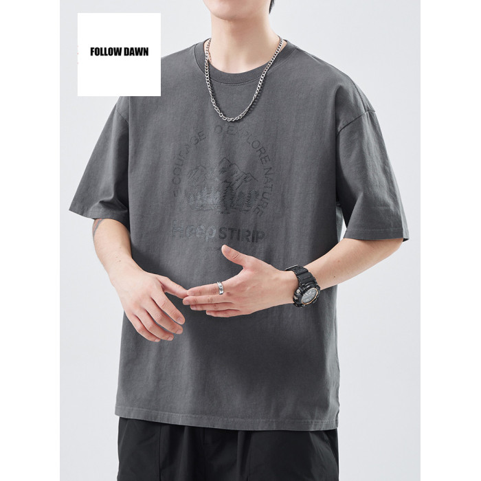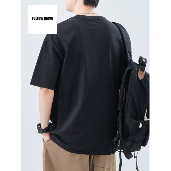 重磅純棉T恤男夏季寬松休閒上衣新款美式圓領短袖體恤男