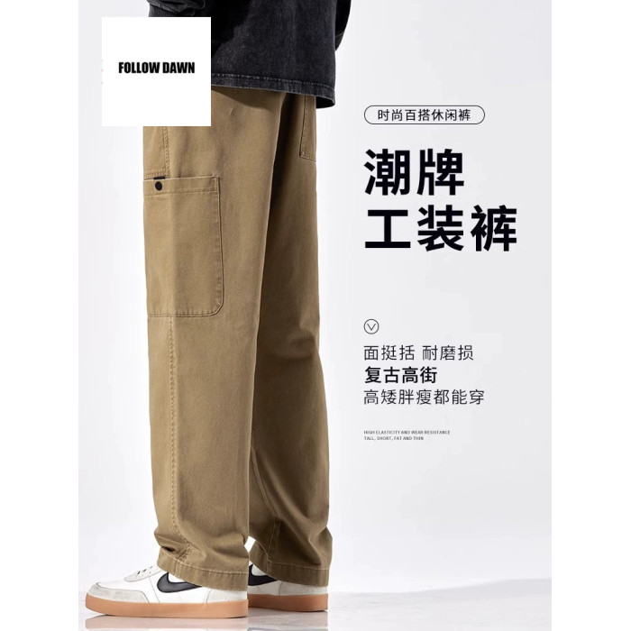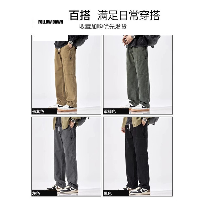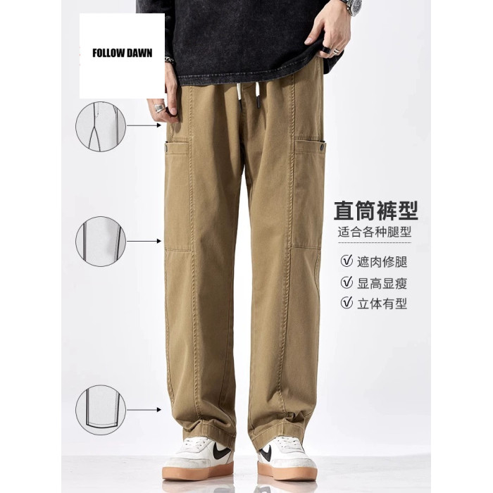 休閒褲男士春秋季新款美式復古寬松直筒垂感濶腿工裝褲子