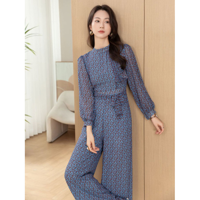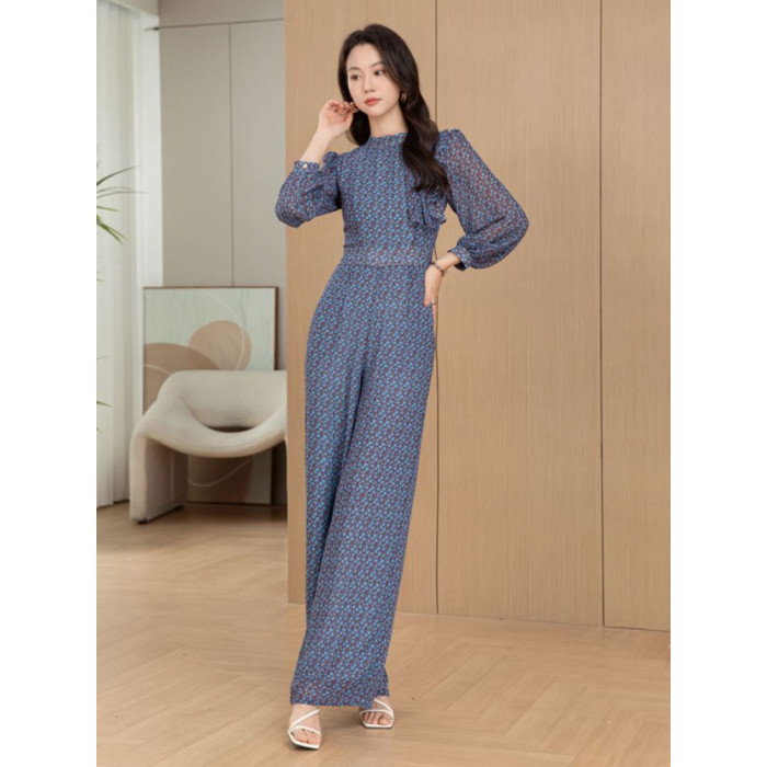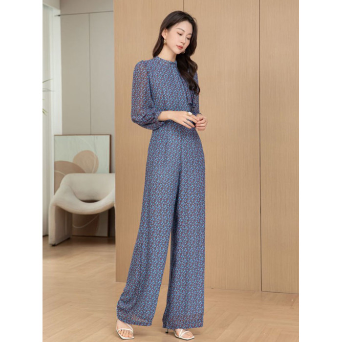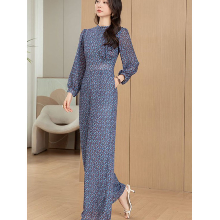 2025春夏新款花色減齡高腰修身顯瘦氣質長款連體衣優雅時尚連體褲