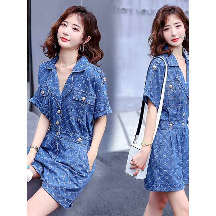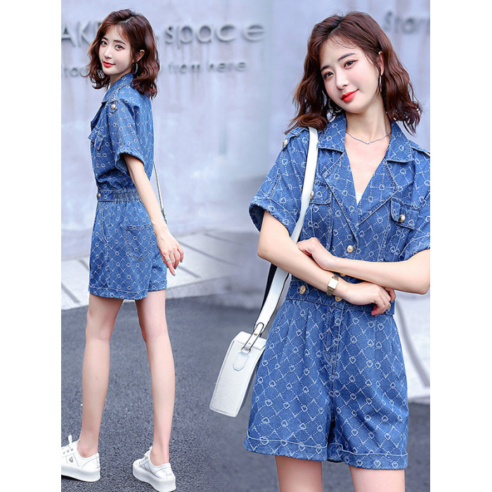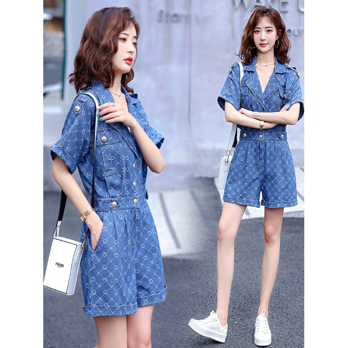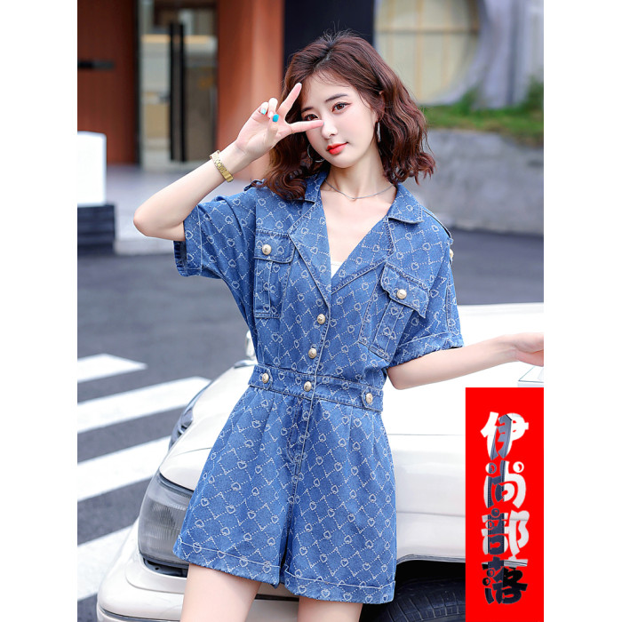 牛仔連體褲女2025新款夏季歐洲站高腰顯瘦氣質名媛百搭短褲連體衣