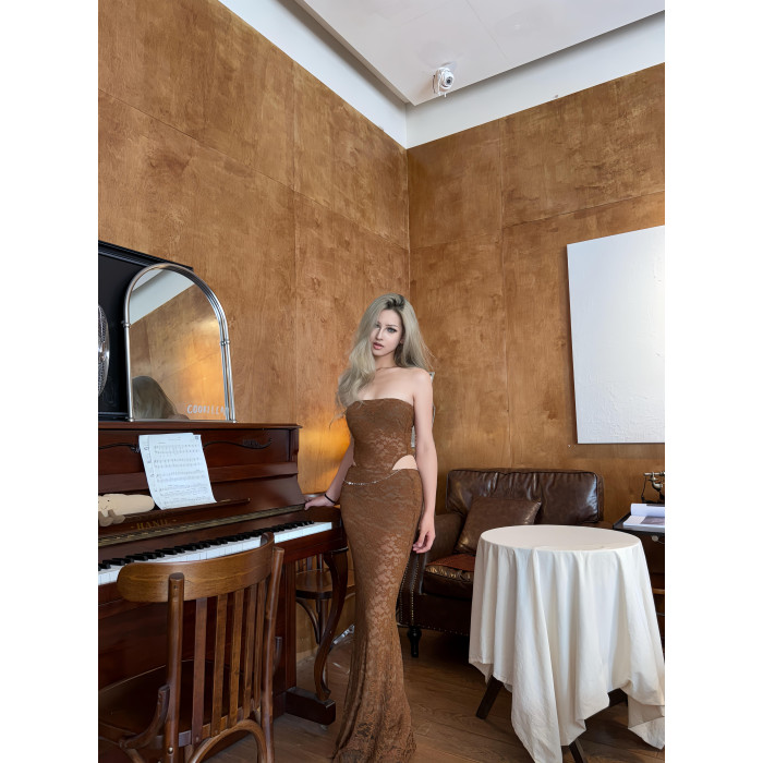 OUTFlT 歐美辣妹風性感鏤空蕾絲花紋透視連體衣包臀半裙兩件套