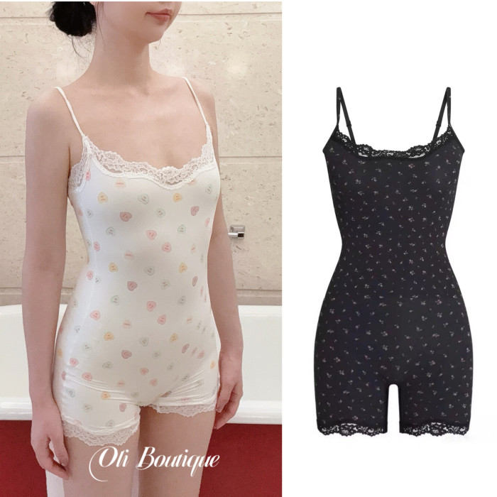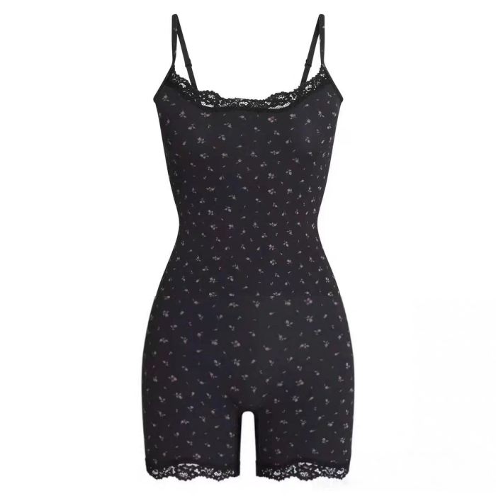 歐美風性感小個子可外穿拼接蕾絲花邊性感顯瘦連體褲輕塑連體衣女
