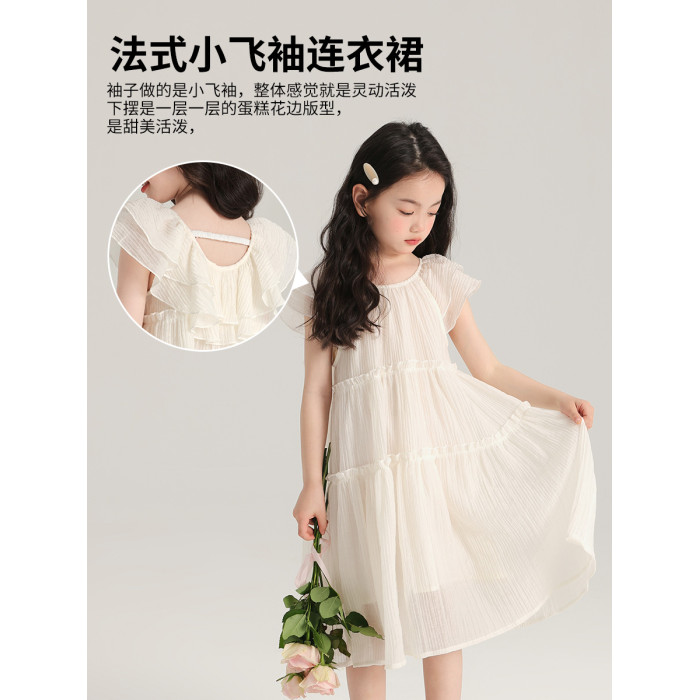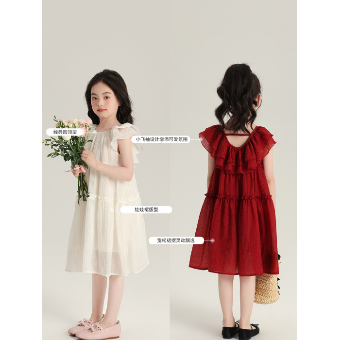 布丁哈魯童裝夏裝女童紅色裙子2025夏季新款兒童法式公主裙連衣裙