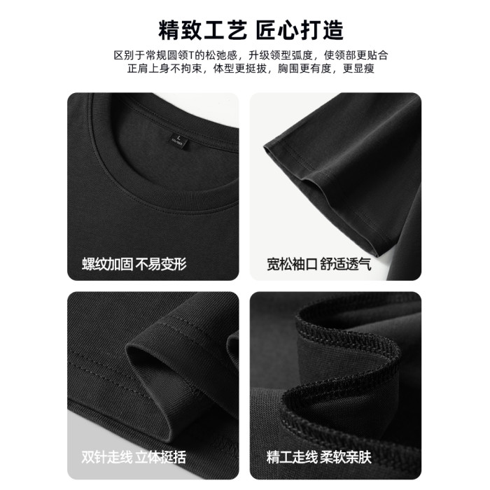啄木鳥國潮竹子短袖t恤男夏季男士重磅寬松純棉卡其色圓領體恤YB