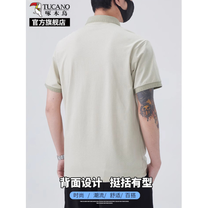 啄木鳥冰絲POLO衫短袖男士2025夏季新款潮牌寬松休閒T恤夏裝上衣K