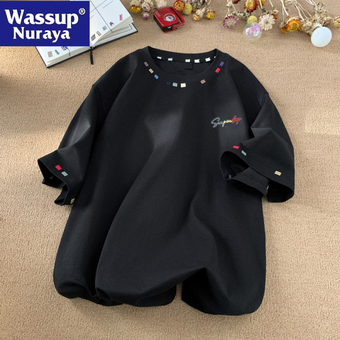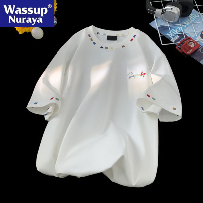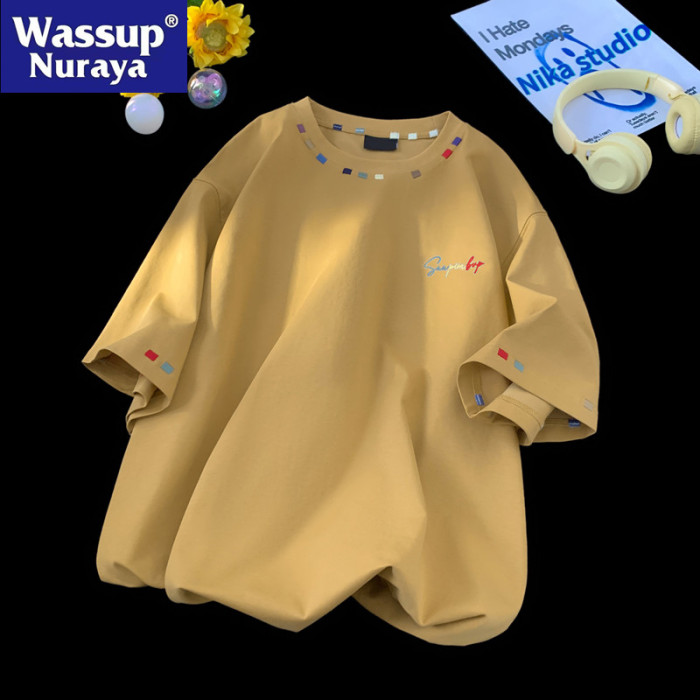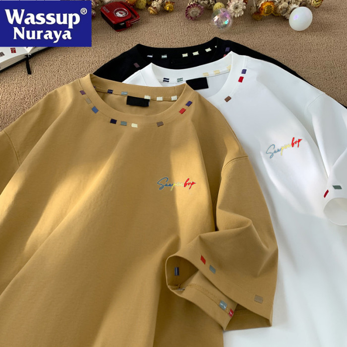 WASSUP NURAYA美式重磅純棉短袖t恤男夏季潮牌刺綉寬松半袖上衣