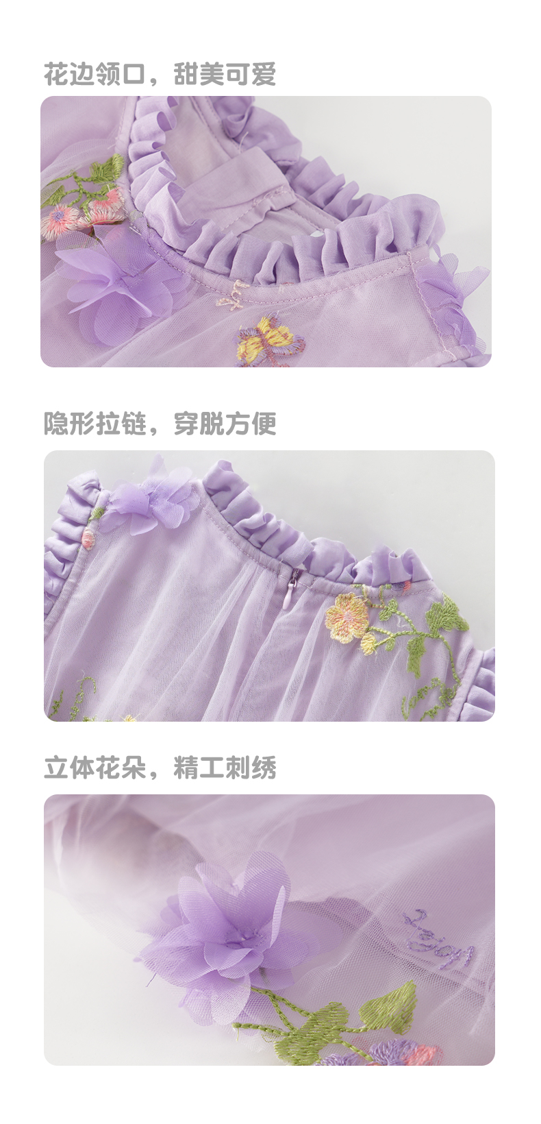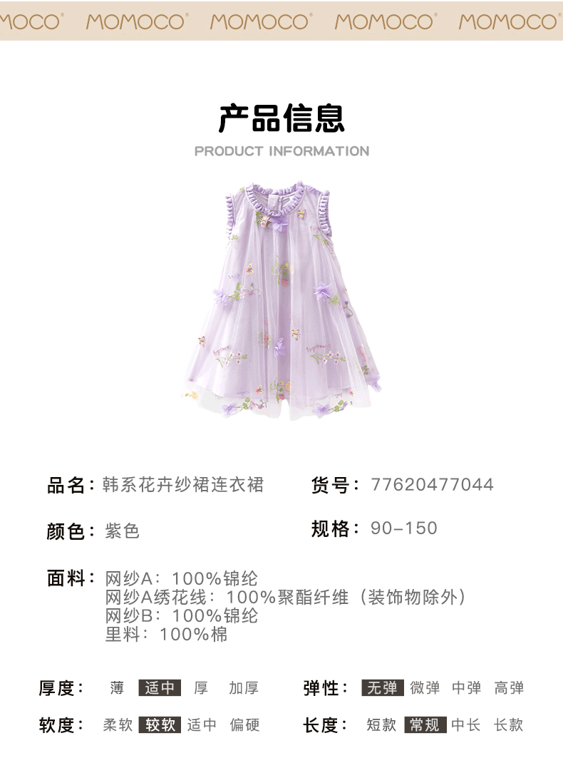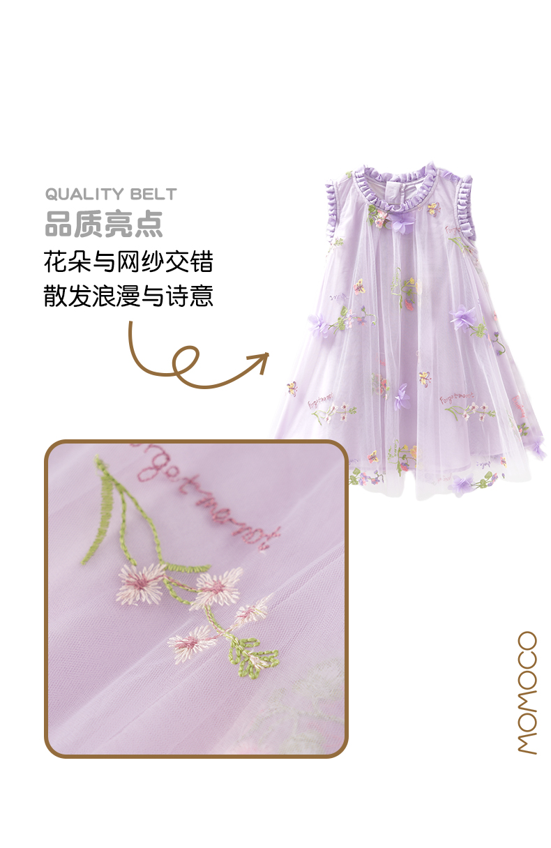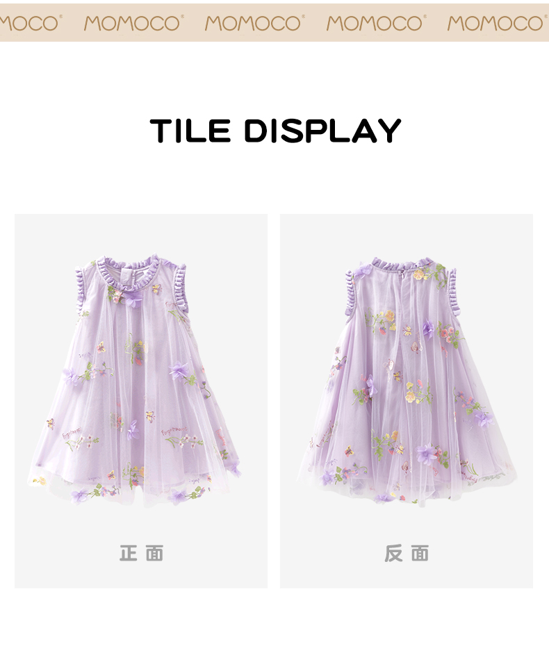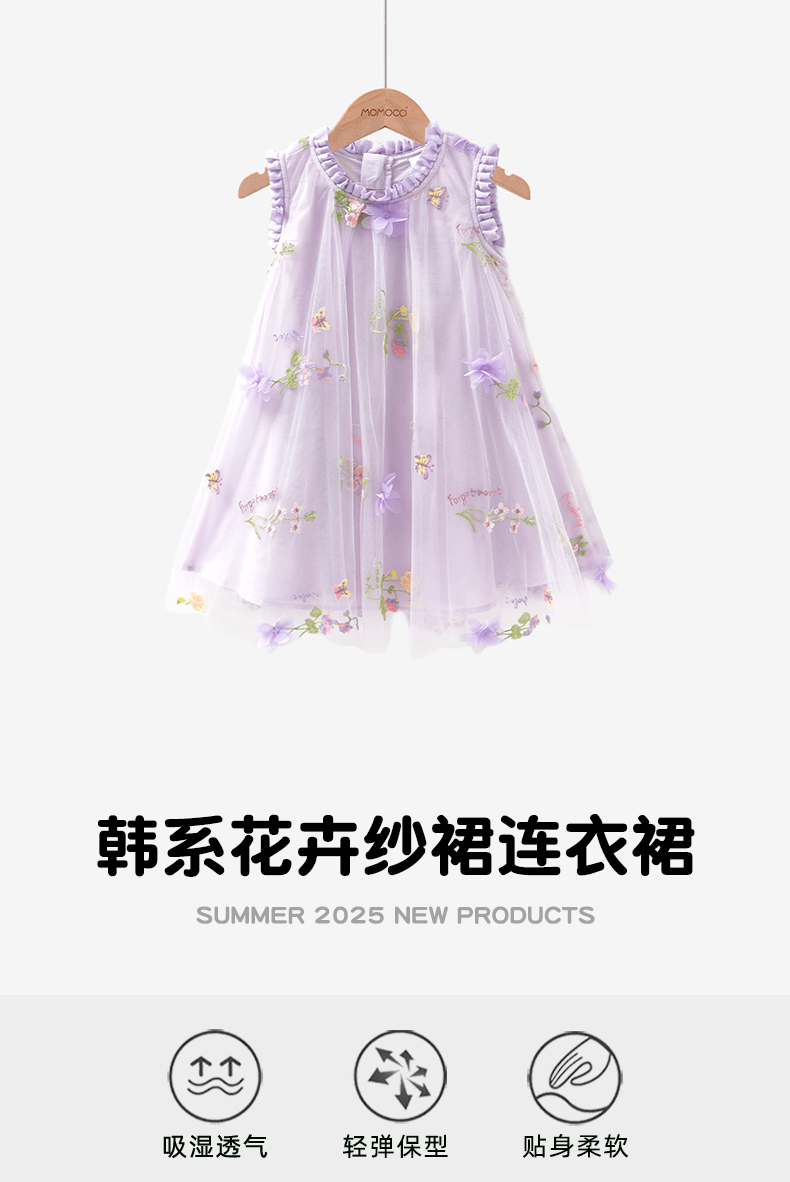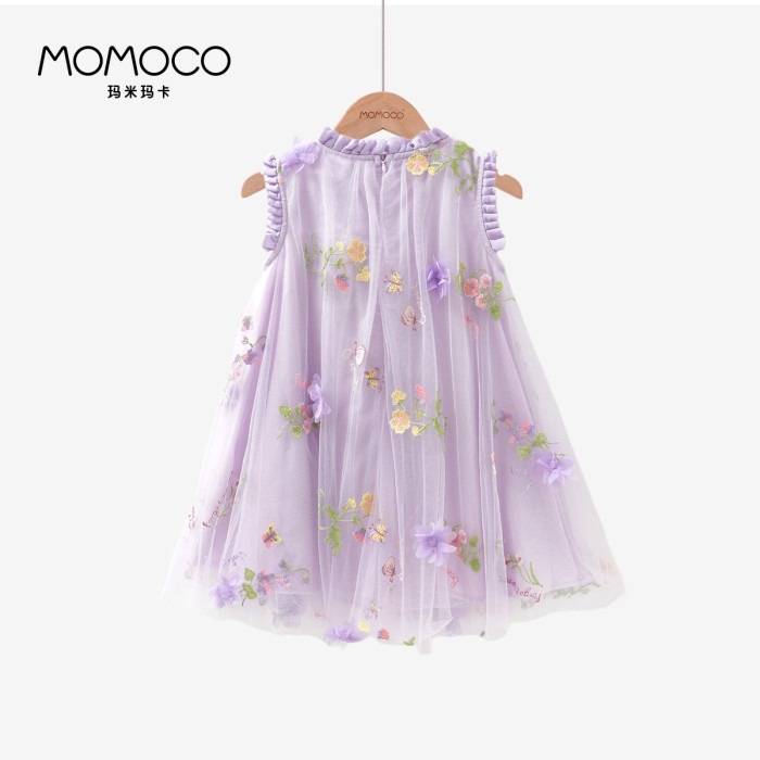 MOMOCO/瑪米瑪卡女童連衣裙2025夏季新款中大童洋氣花卉公主紗裙
