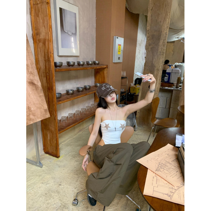 GARIS 星星豹紋連體衣夏季新款外穿性感美背抹胸吊帶背心辣妹上衣