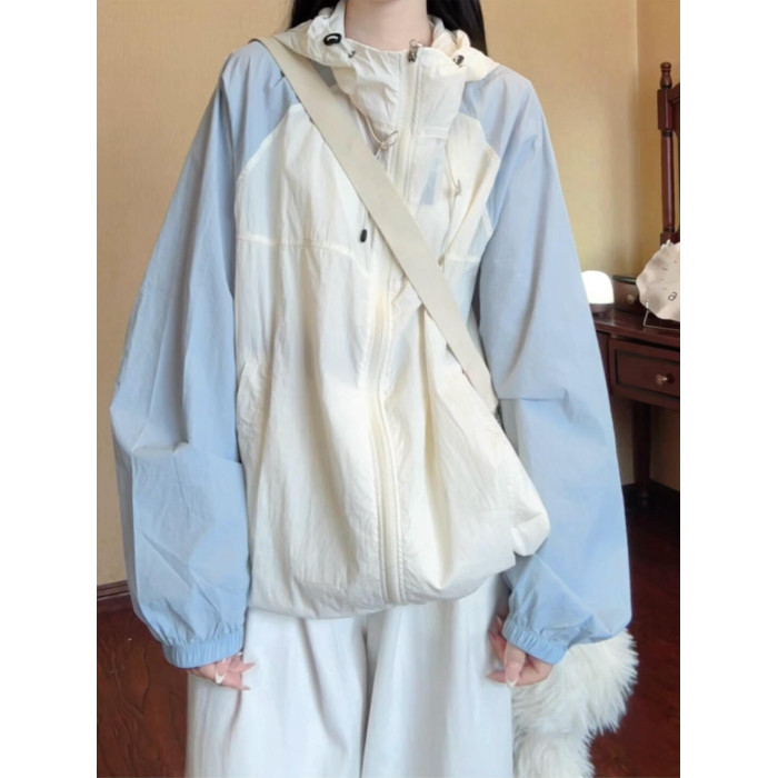 夏季超好看撞色防曬衣女2025新款時尚百搭輕薄透氣防紫外線防曬服