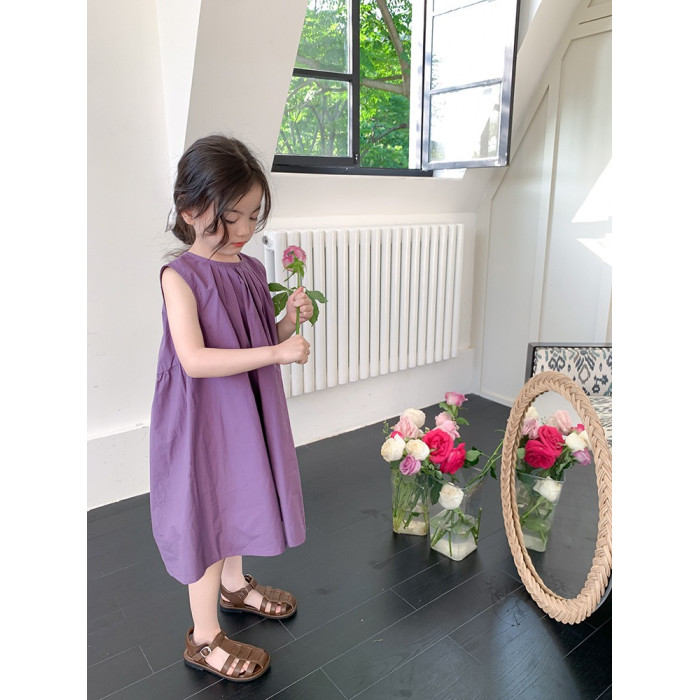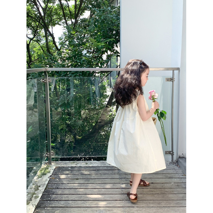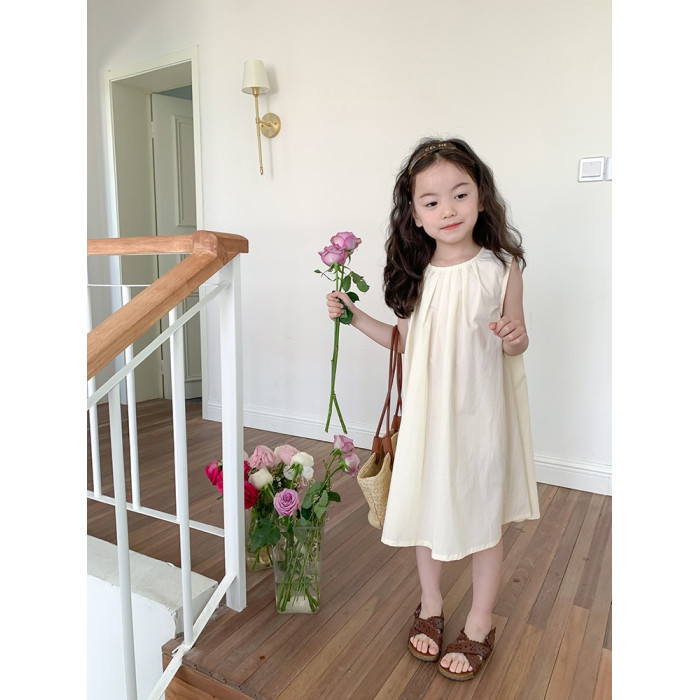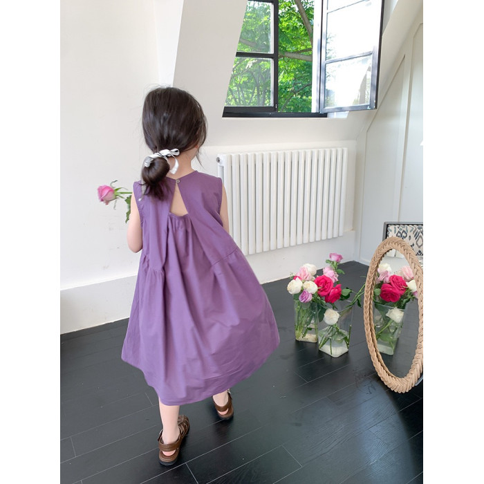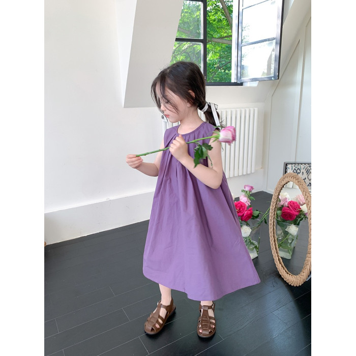 米素童裝2025夏季新款純色洋氣薄款無袖夏天舒適連衣裙女童背心裙
