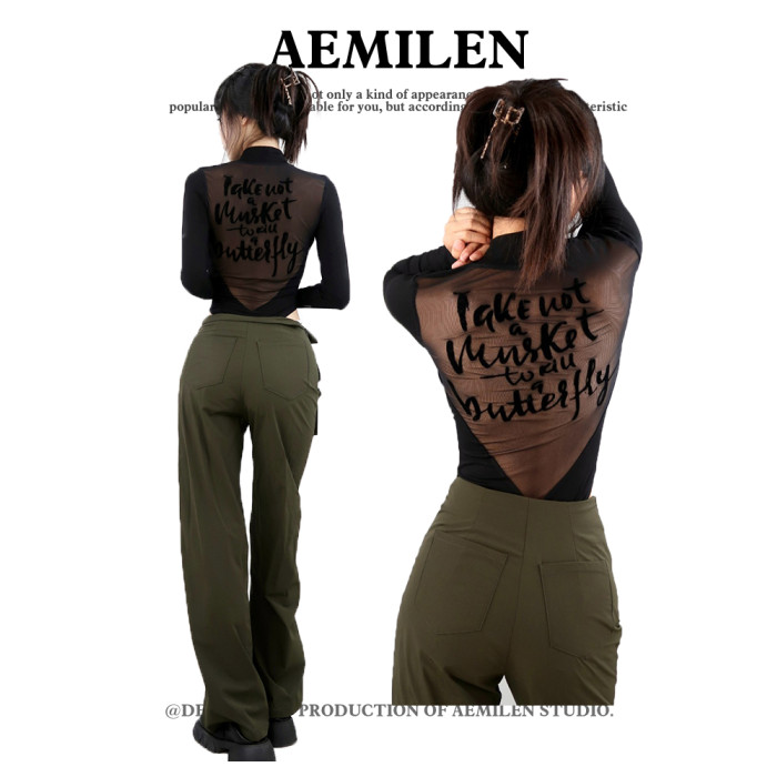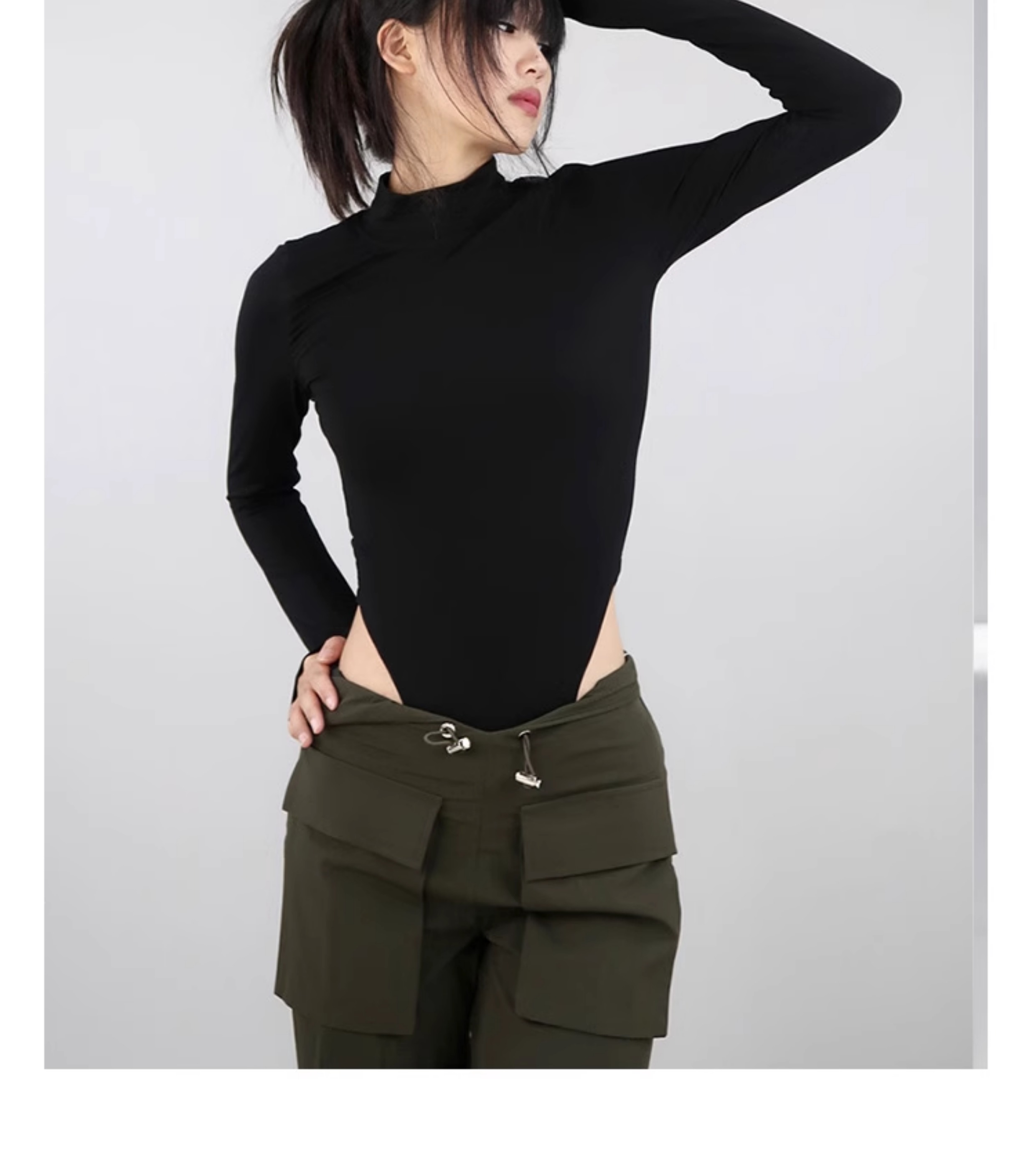 小高領美背連體衣女爵士舞街舞修身顯瘦打底衫設計感拼接長袖t恤