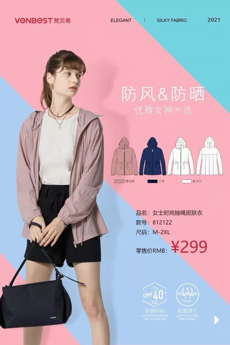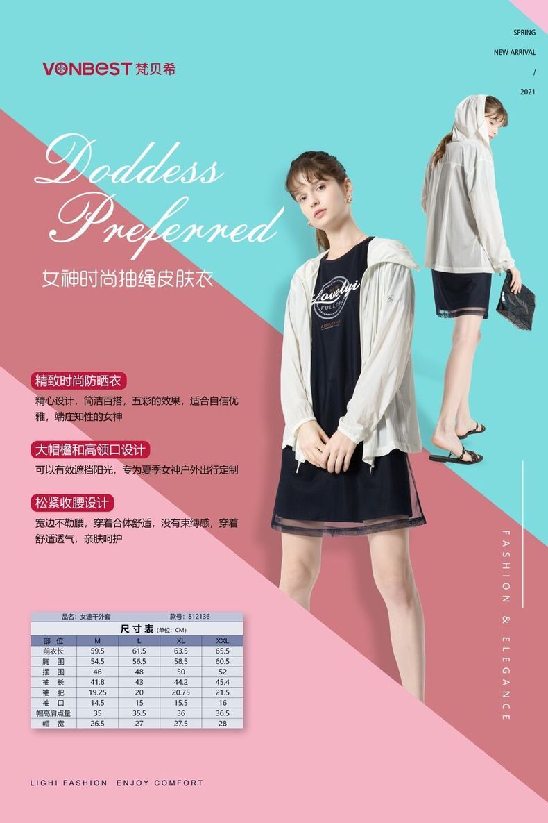梵貝希防曬衣服女夏新款薄款透氣連帽寬松皮膚衣速乾長外套812122