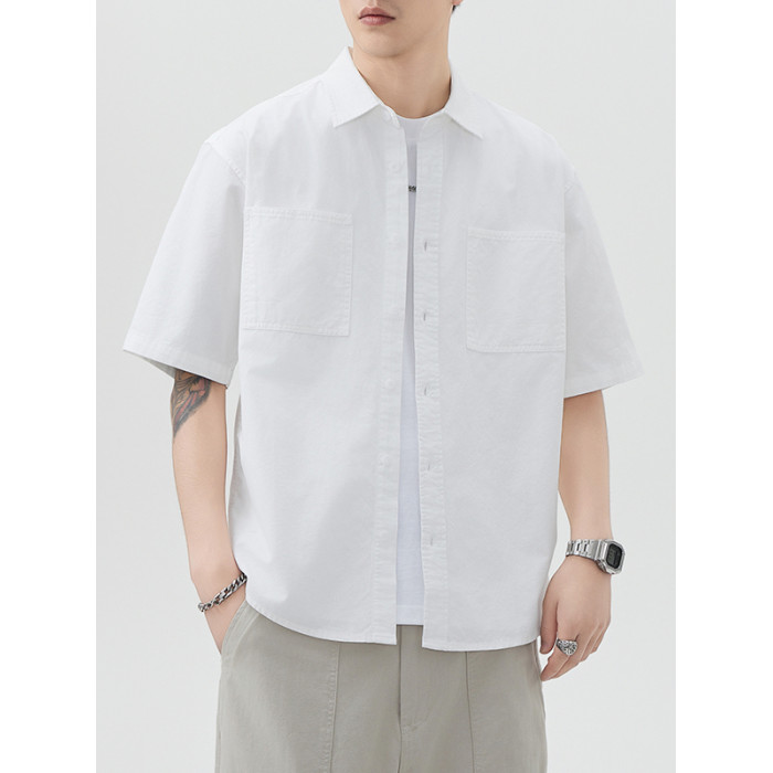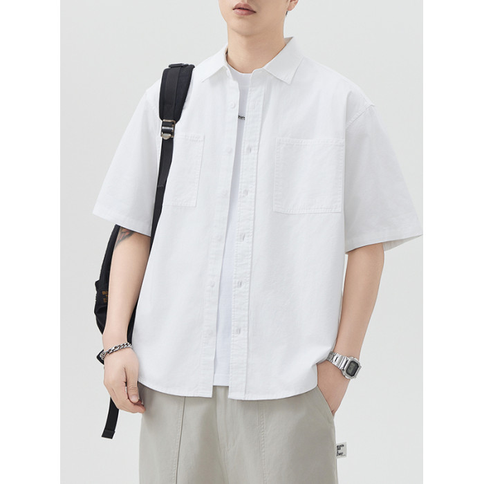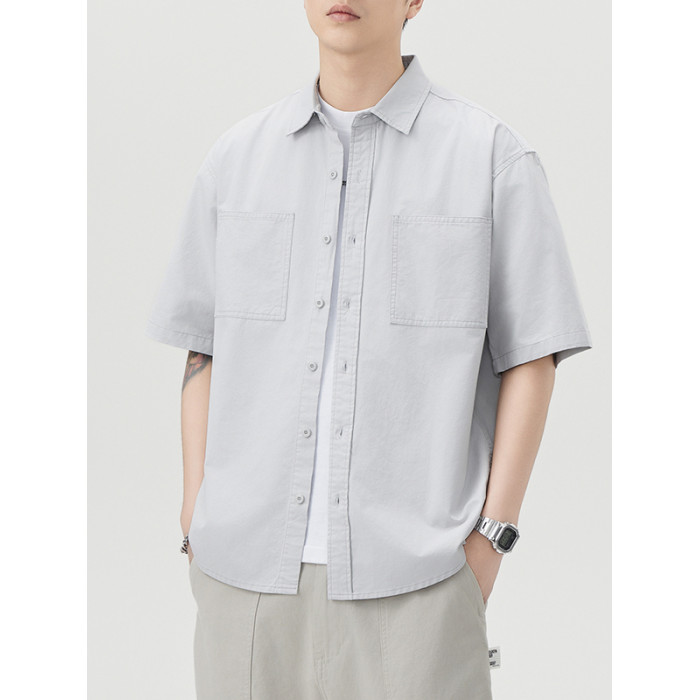 2025百搭工裝夏季新款純棉短袖襯衫男日系簡約輕商務襯衣美式潮流