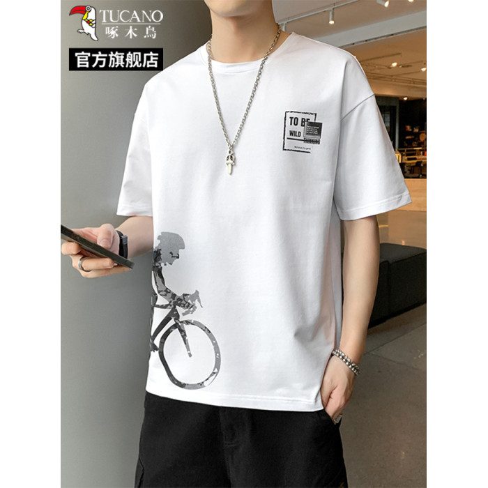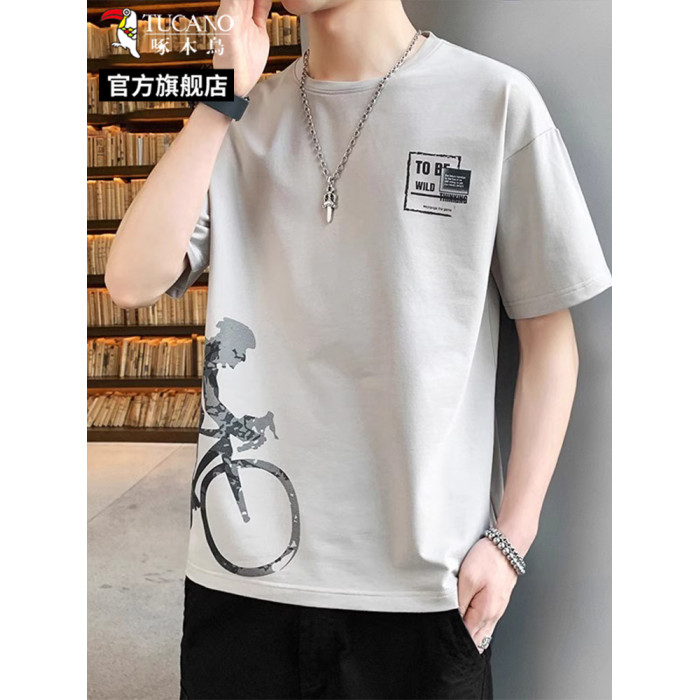 啄木鳥短袖t恤男士2025夏季新款圓領印花上衣服潮流休閒體恤男裝L