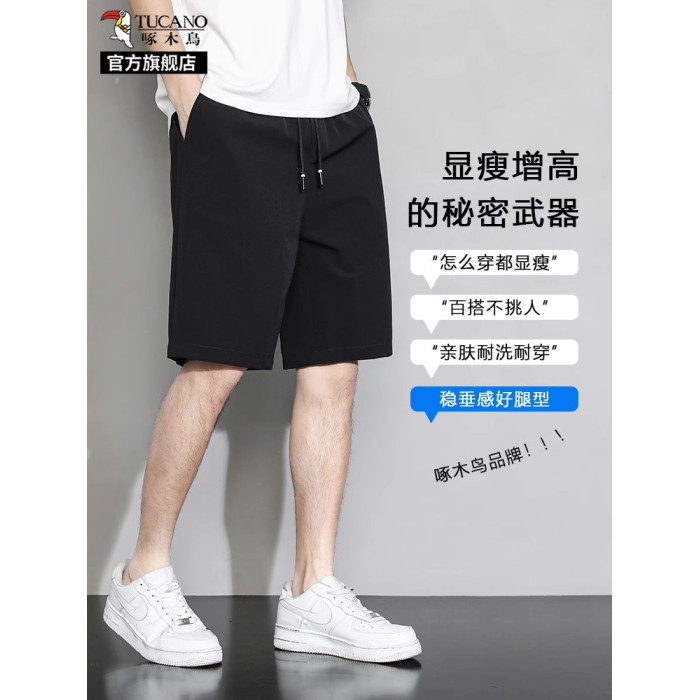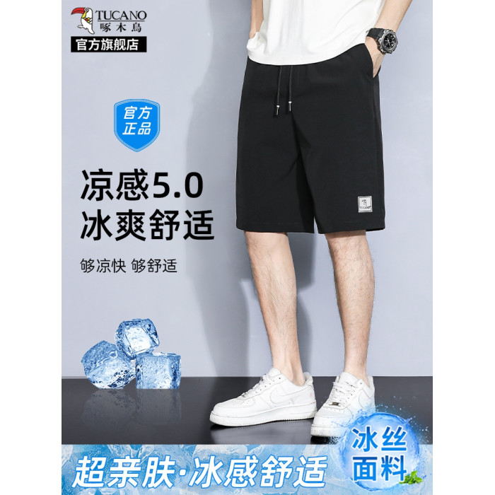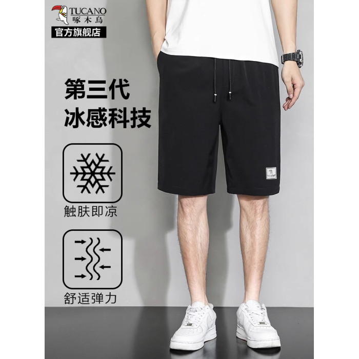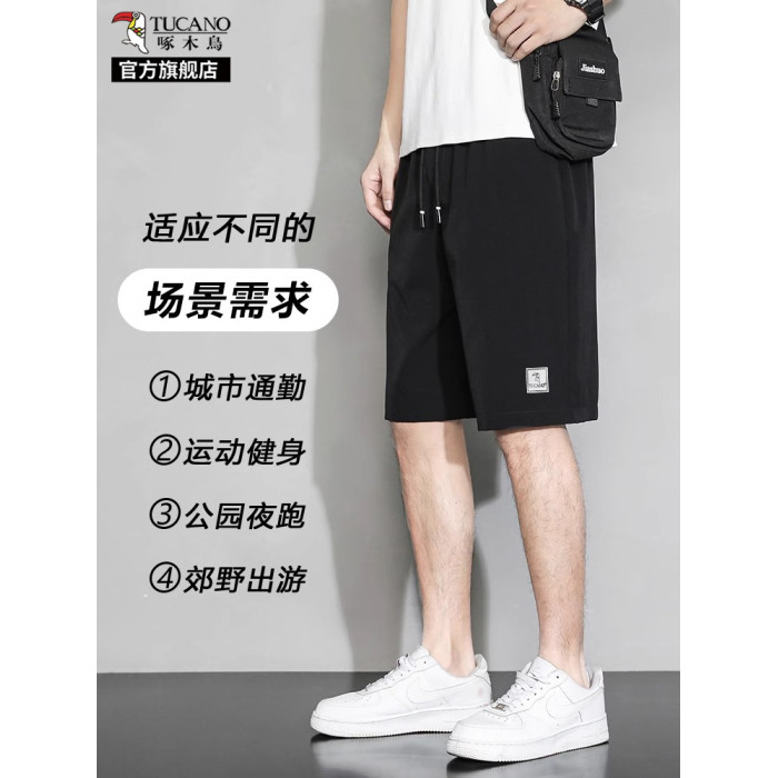 啄木鳥冰絲休閒運動短褲男士夏季薄款速乾沙灘寬松外穿五分褲子K