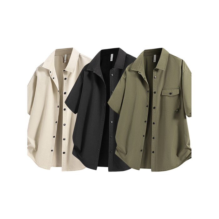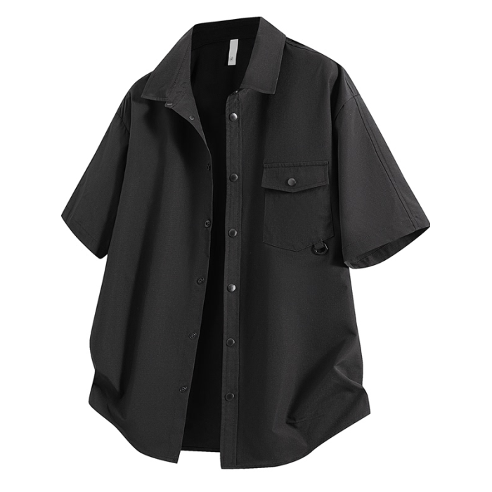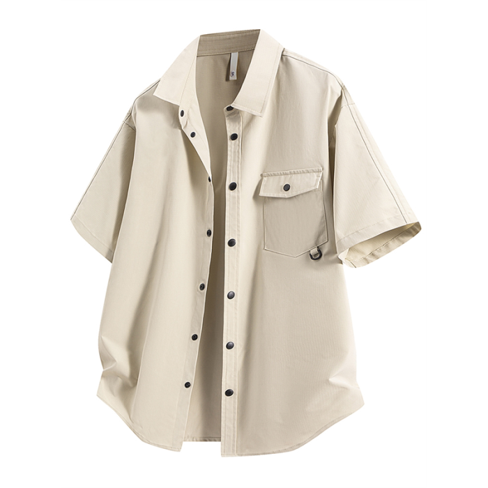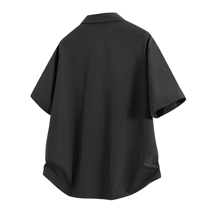 潮牌工裝短袖襯衫男夏季輕薄寬松休閒百搭薄款口袋設計襯衣外套