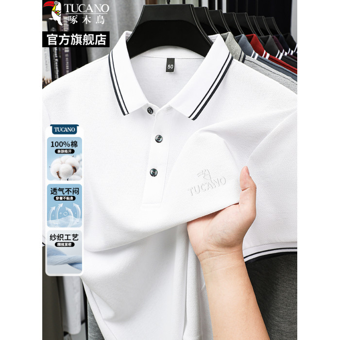 【100%純棉】啄木鳥2025夏季新款白色商務polo衫男士爸爸短袖t恤