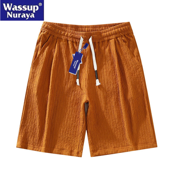 WASSUP Nuraya潮牌肌理感紋理運動短褲男夏寬松直筒休閒五分褲子