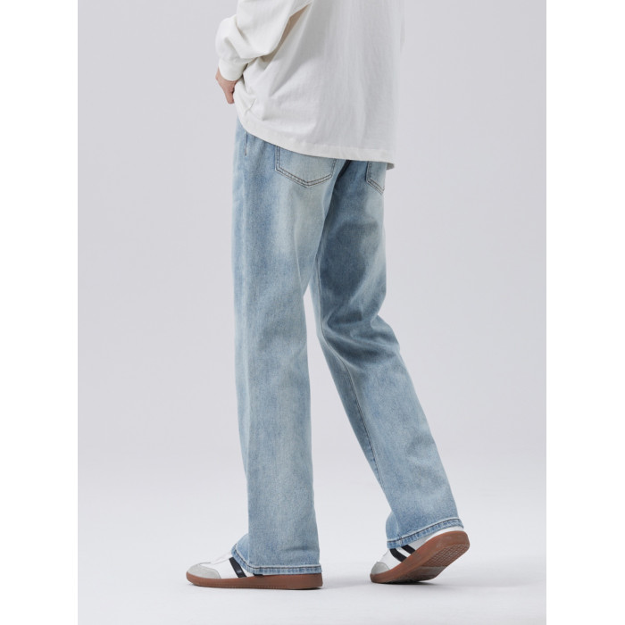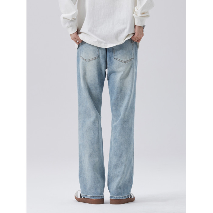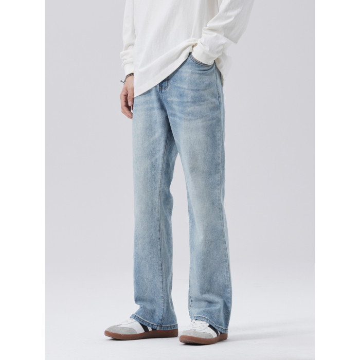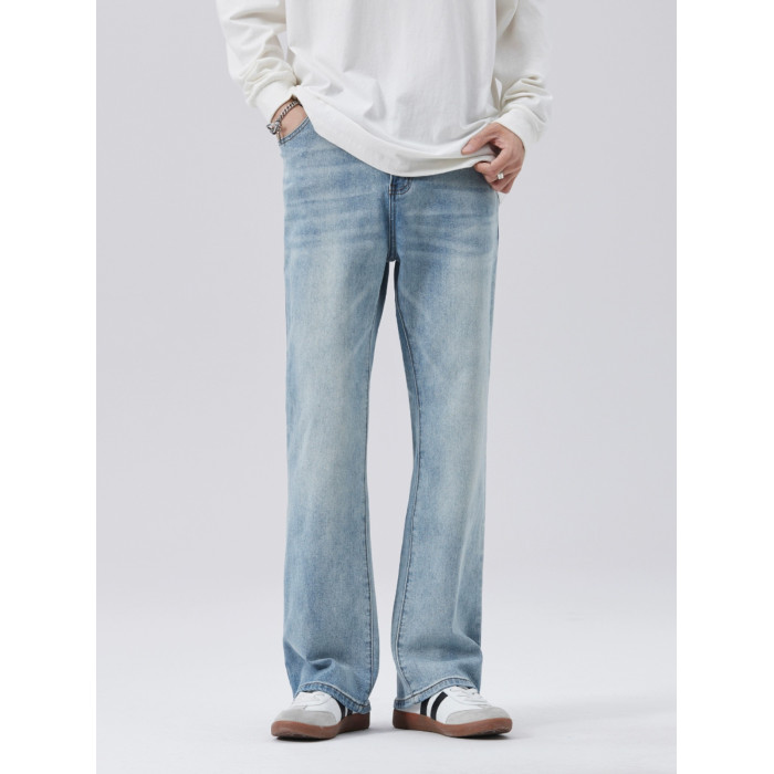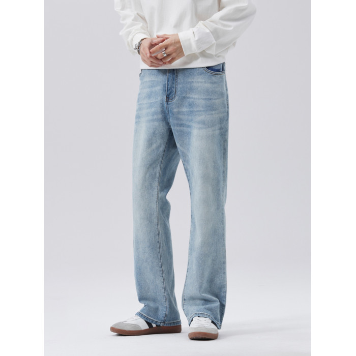 時尚美式街頭復古寬松直筒薄款淺色微喇濶腿休閒牛仔褲2025新款