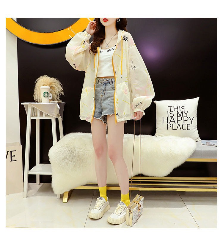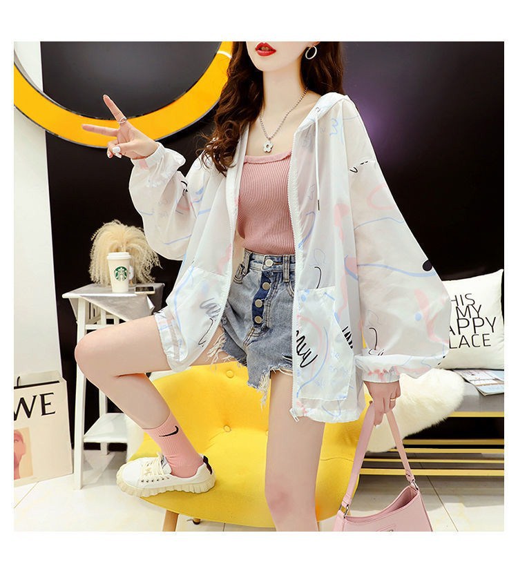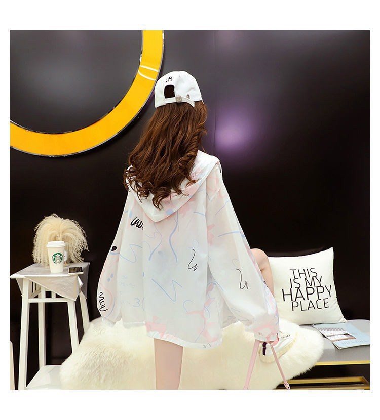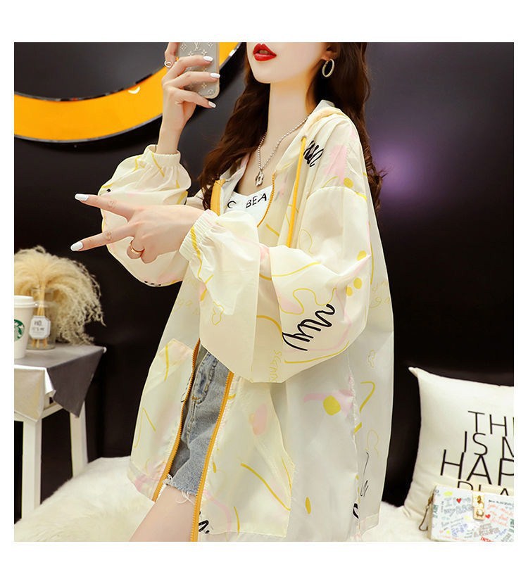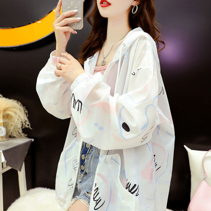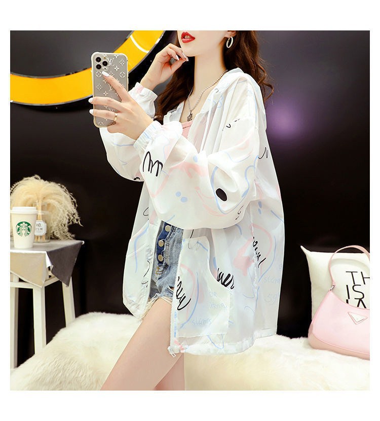 印花防曬衣女夏季新款韓版百搭洋氣防紫外線透氣連帽防曬服薄外套
