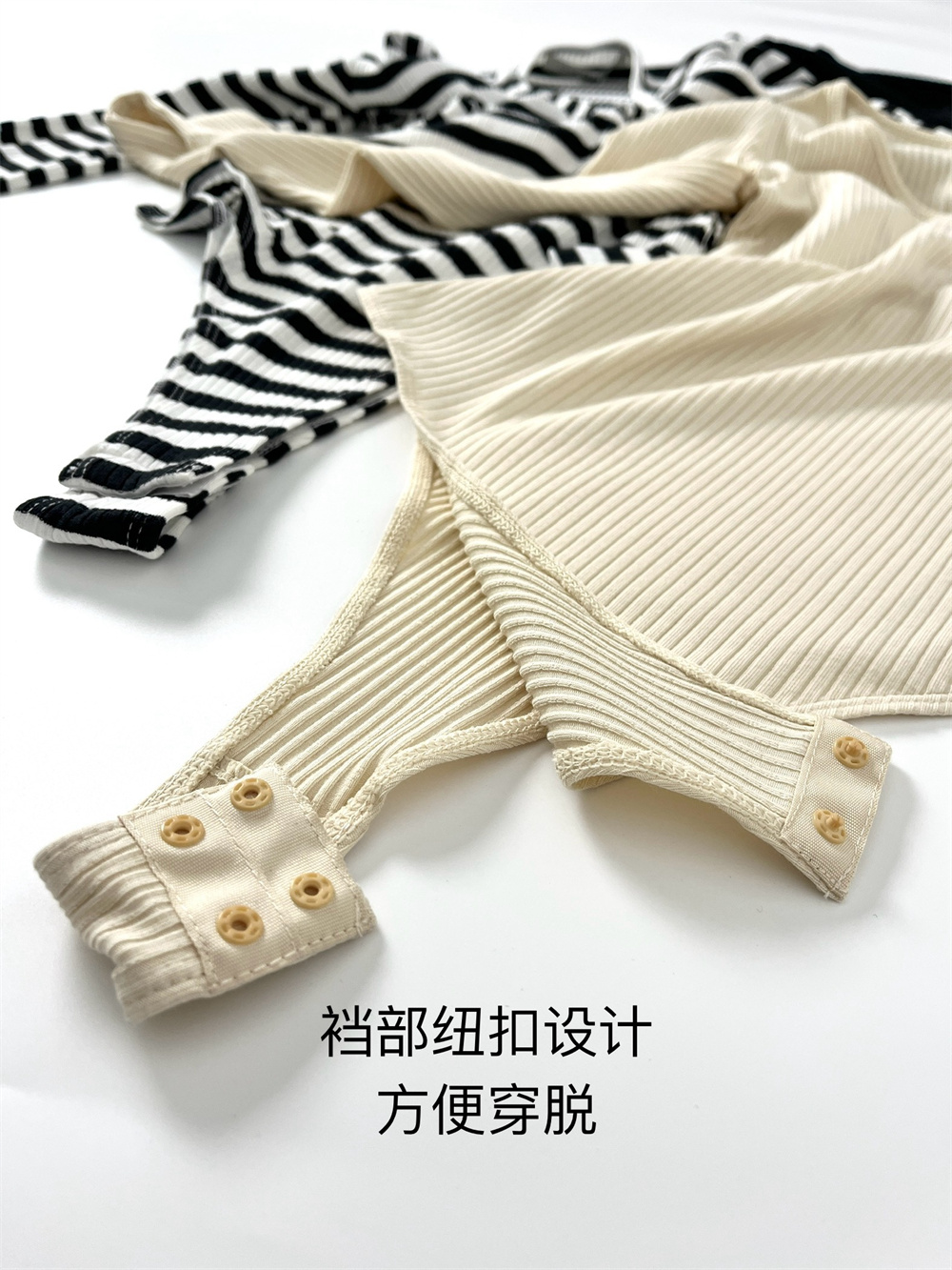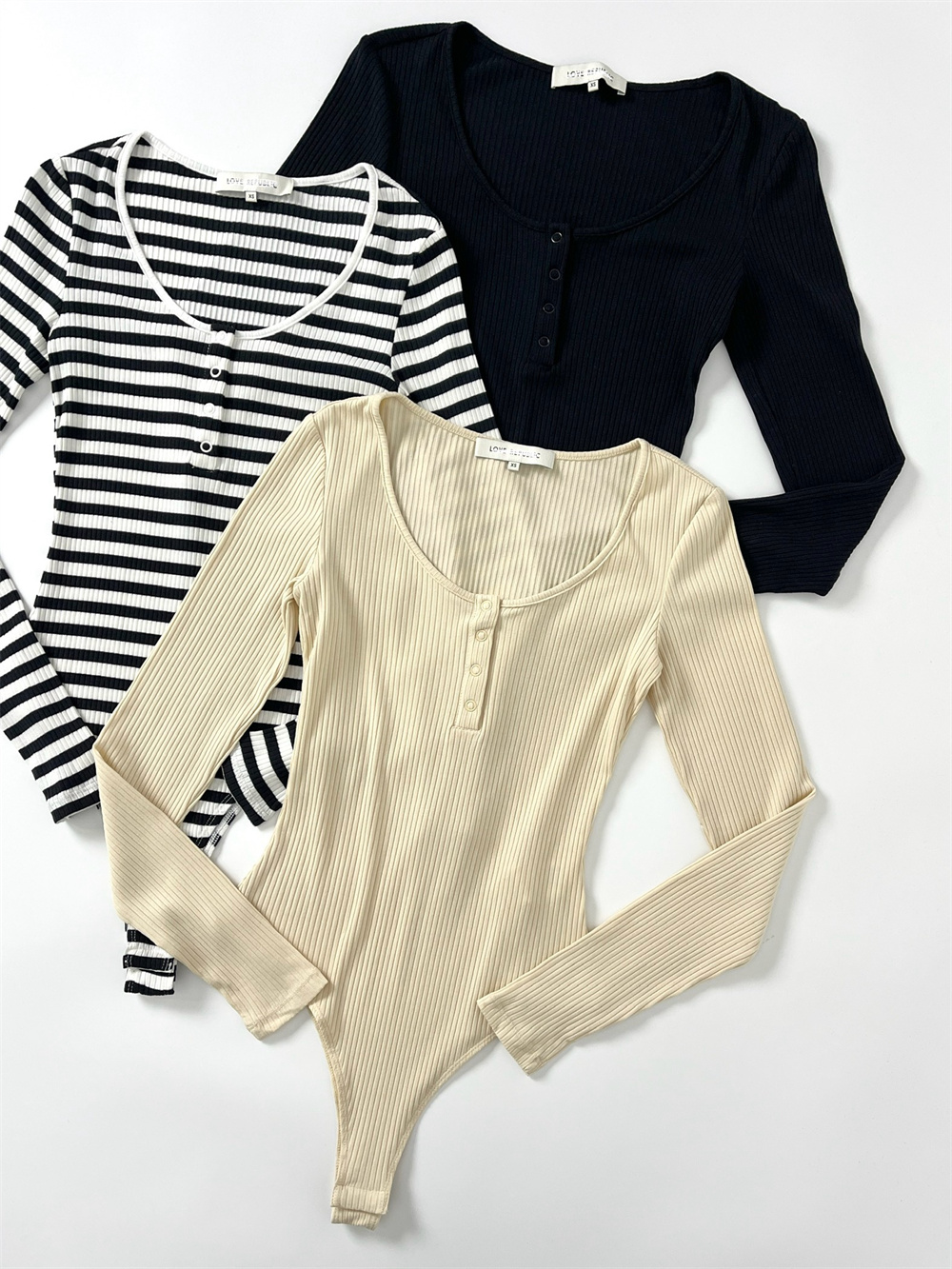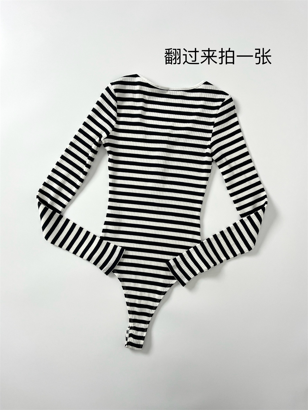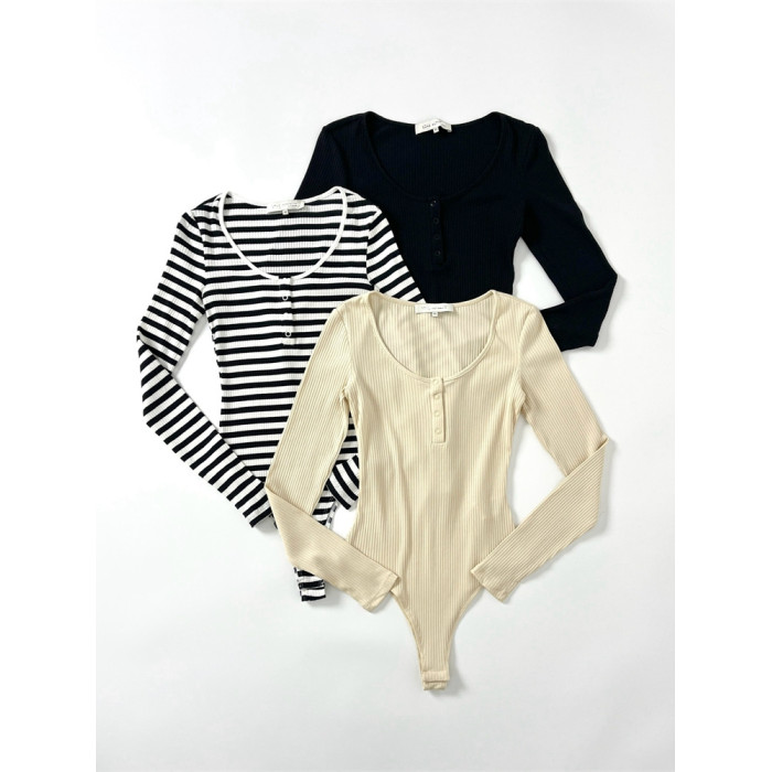 俄單LR xxs-l美式亨利領紐釦長袖T恤連體衣 莫代爾坑條bodysuit女