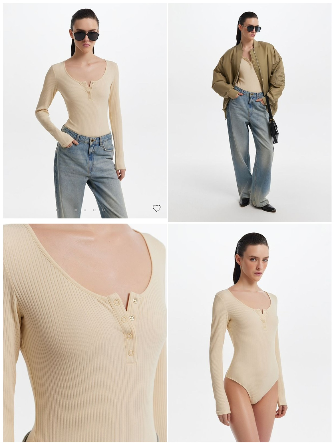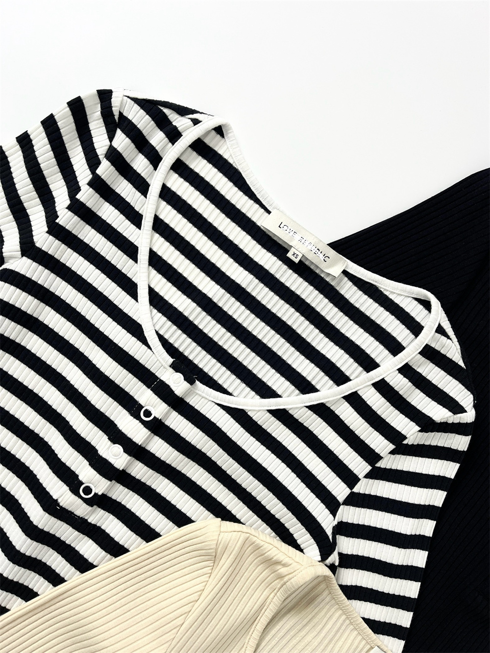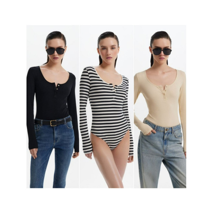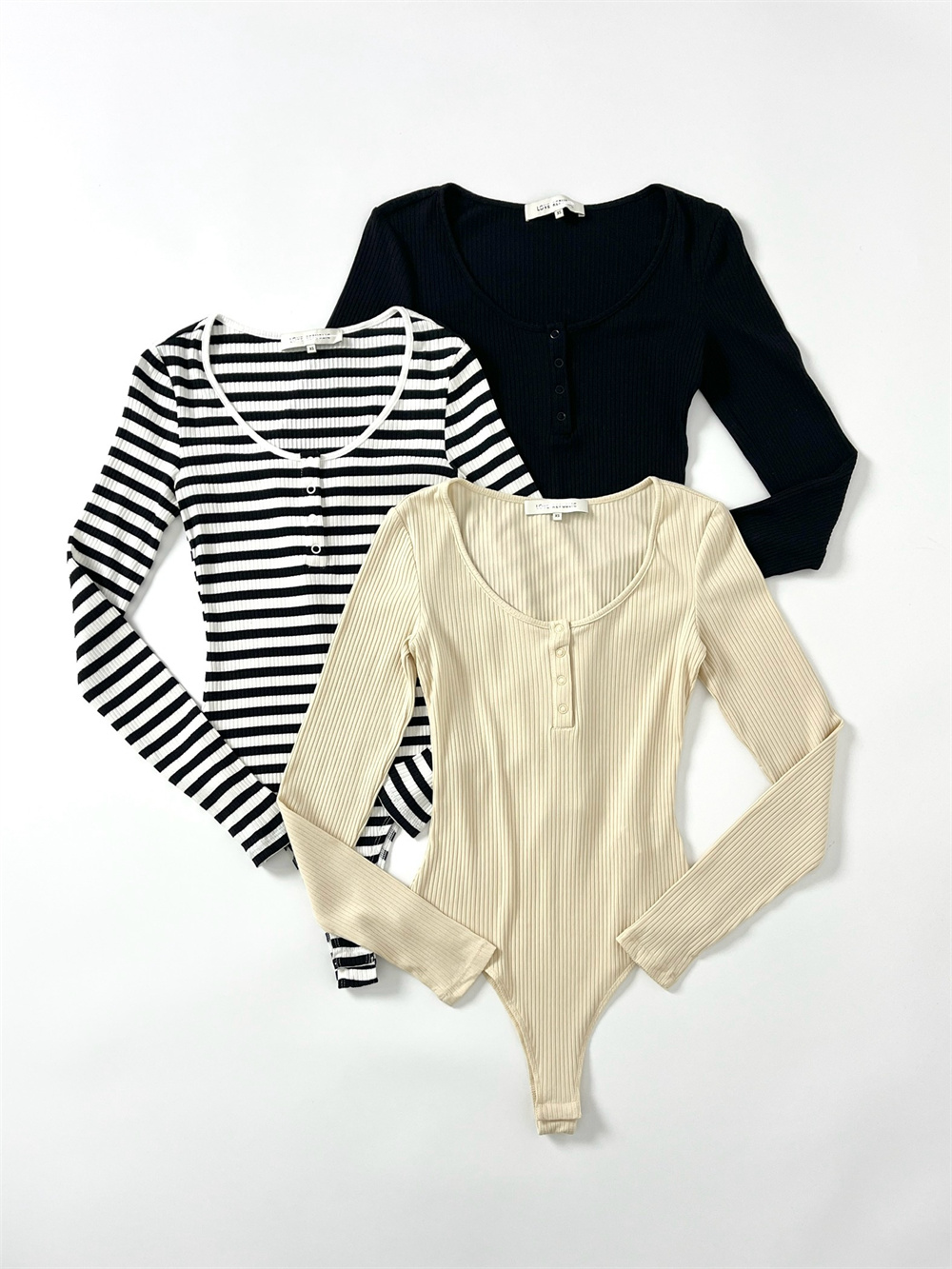 俄單LR xxs-l美式亨利領紐釦長袖T恤連體衣 莫代爾坑條bodysuit女