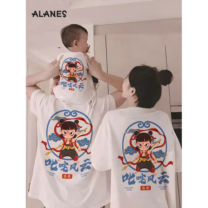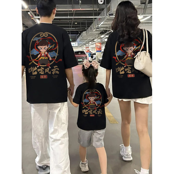 哪吒親子裝一家三口短袖2025新款夏季哪吒服裝國潮風t恤兒童上衣T