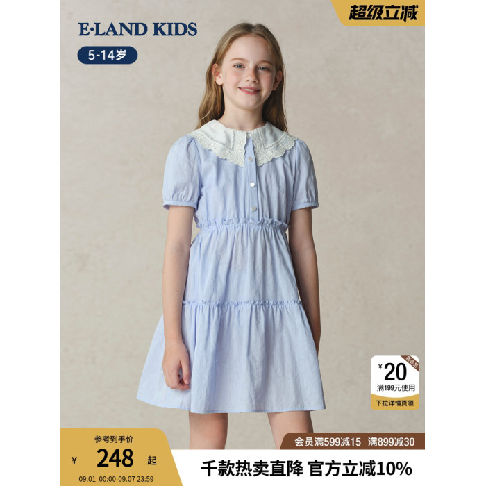 eland kids衣戀童裝女童連衣裙2025年春夏新品法式公主裙畢業禮服