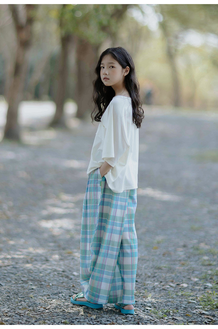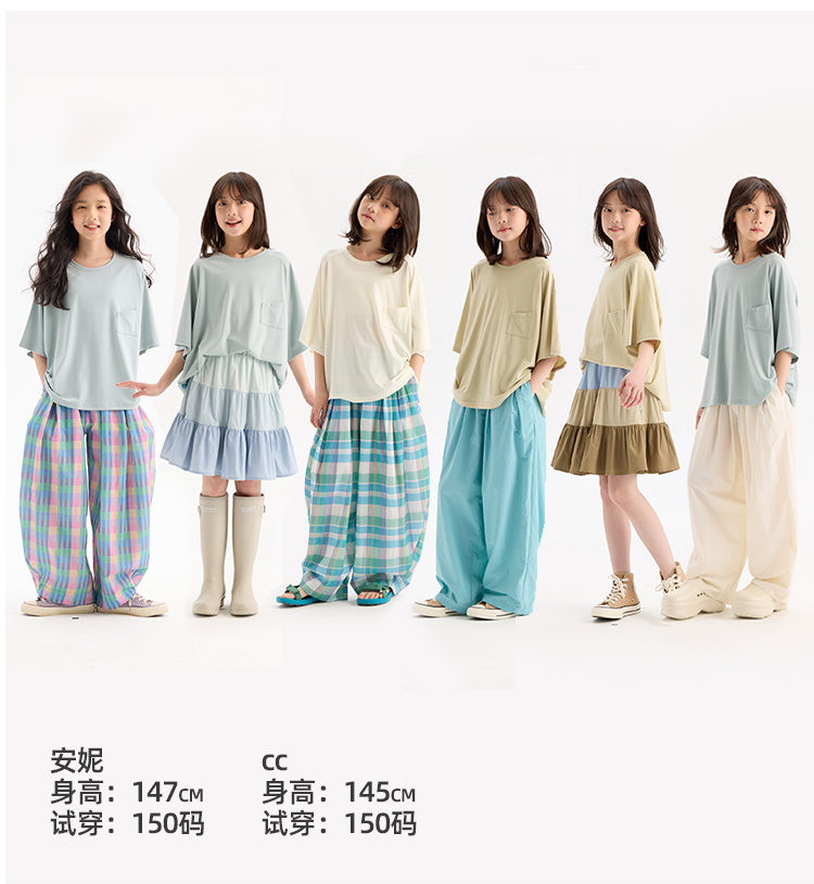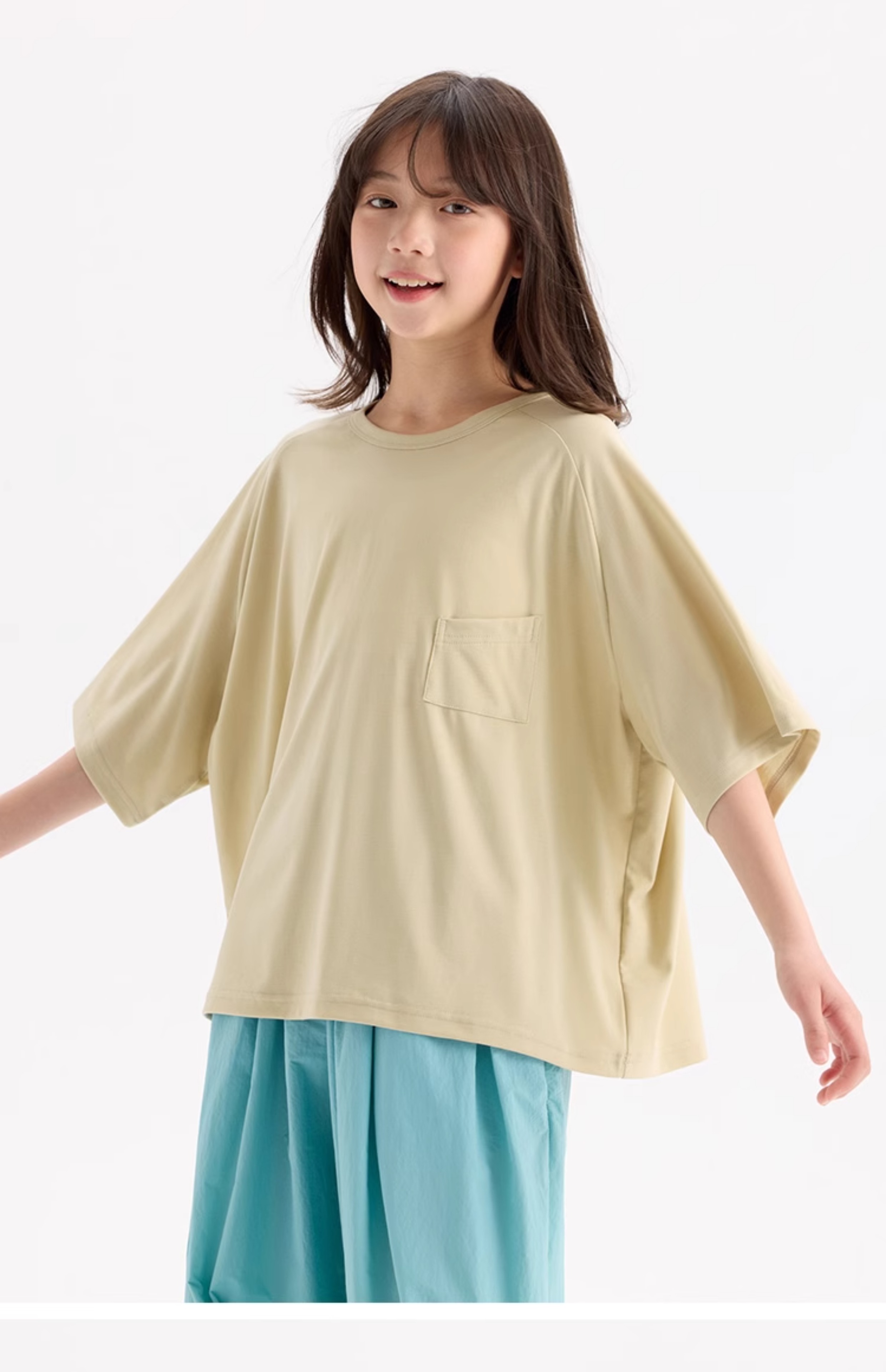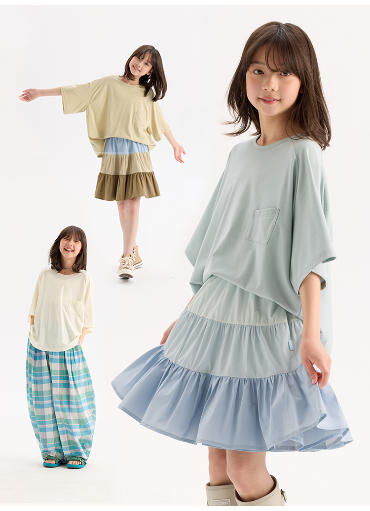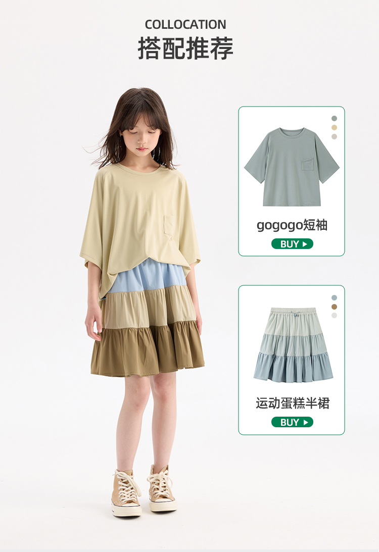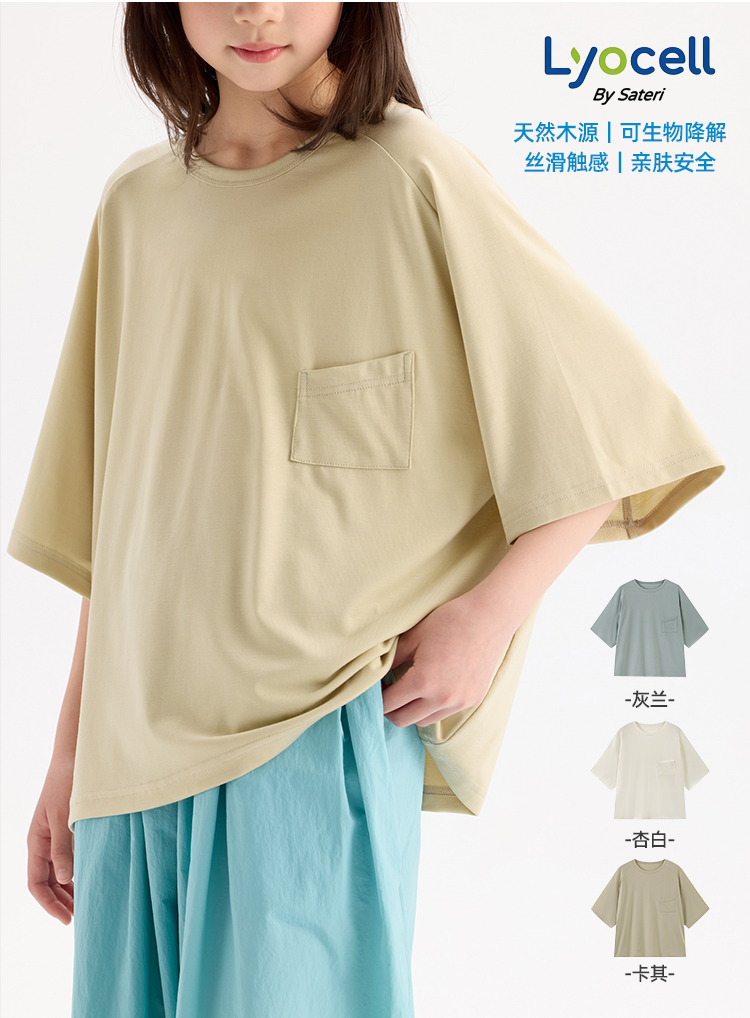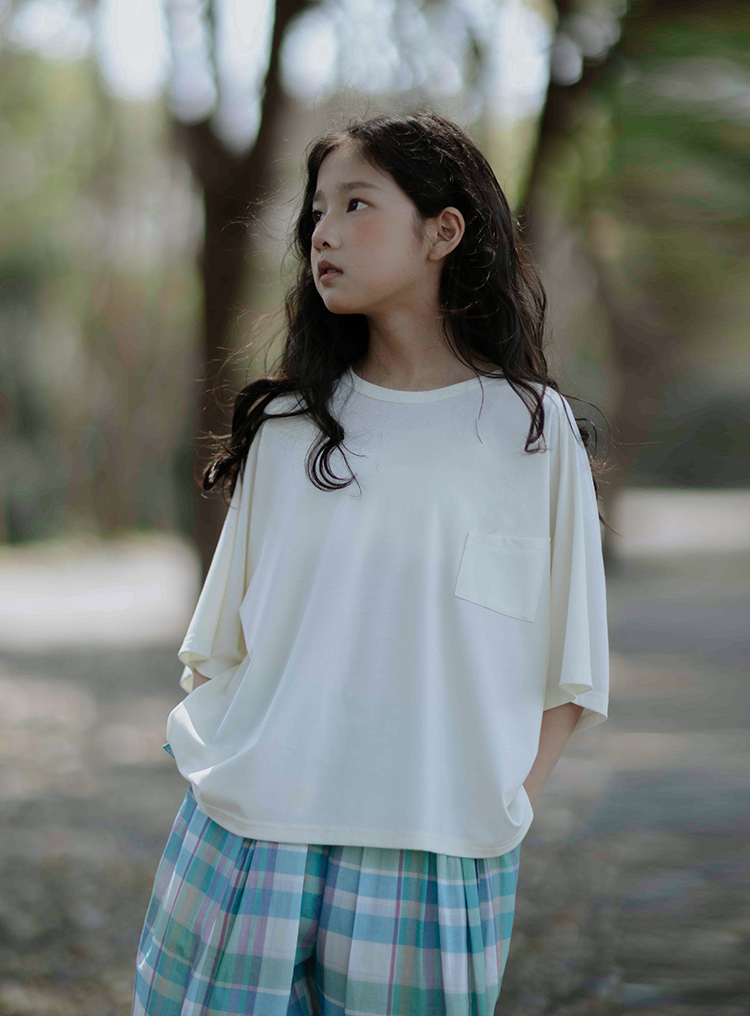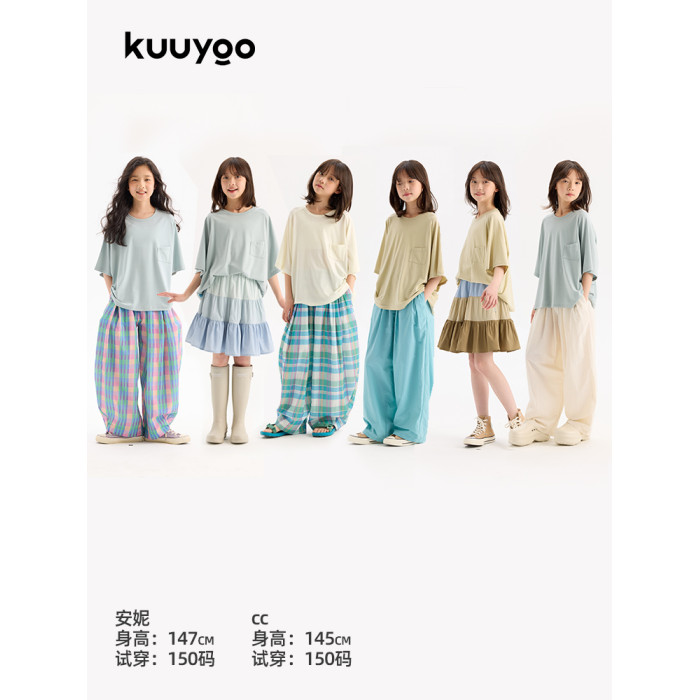 KUUYOO Gogogo中大童夏季短袖親膚天絲t恤兒童寬松插肩袖女童上衣
